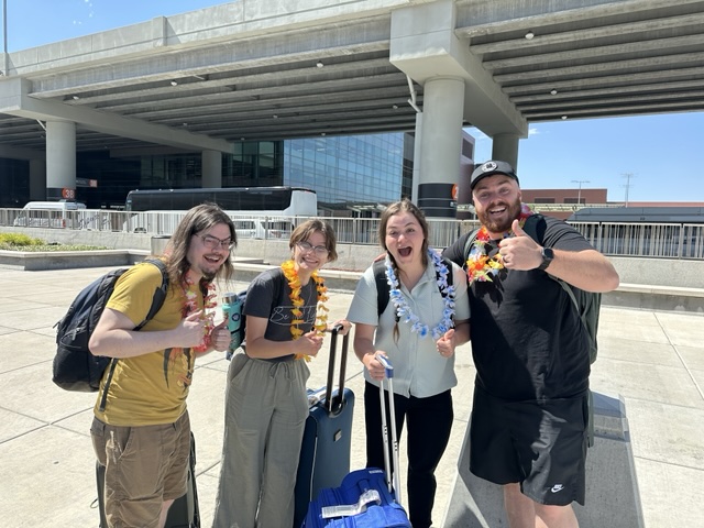 Sharon and Katelyn's mom Coleen were kind enough to take us to the airport, and we were a little embarrassed to ask them to come pick us up again, but they did, bless their hearts. Sharon even had "welcome back" leis for the group she picked up.