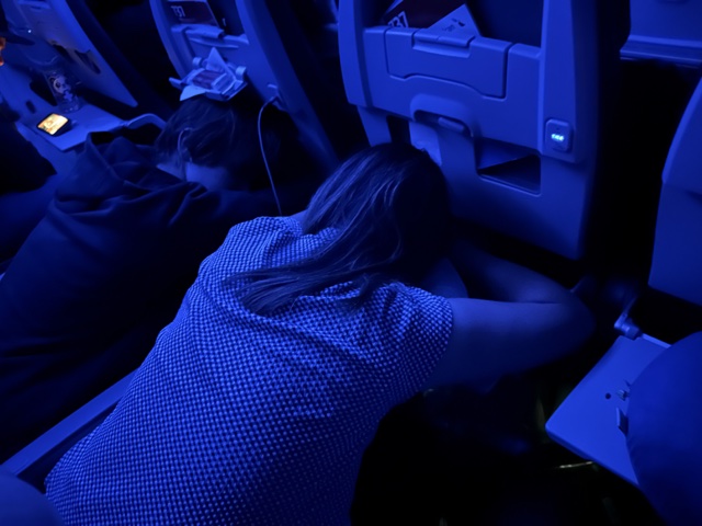 Linette and I lucked out with some exit row seats that allowed us to lean over and get a little bit of sleep on the plane.