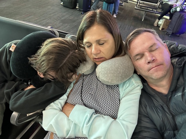 We caught a few Zs while we waited for our flight (well, maybe half a Z).