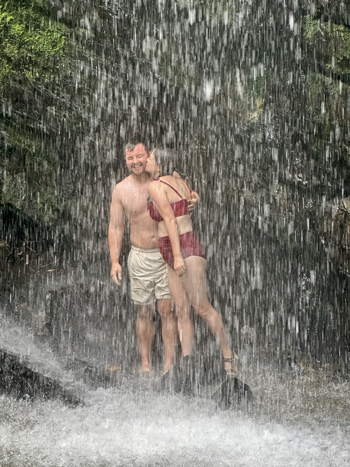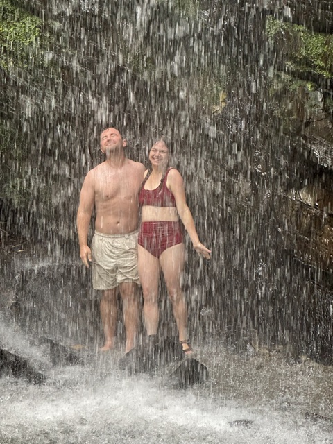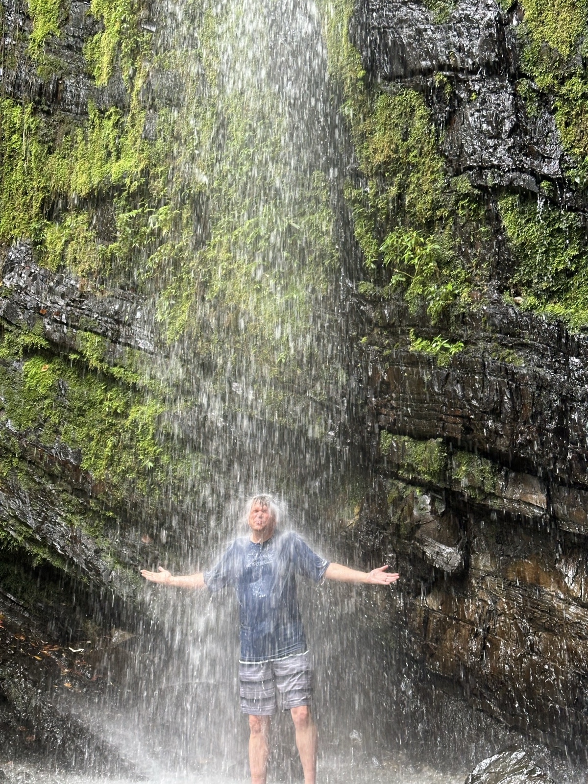 Some of us took a turn walking under the waterfall and getting drenched. It was hard to breathe when all the way under there.