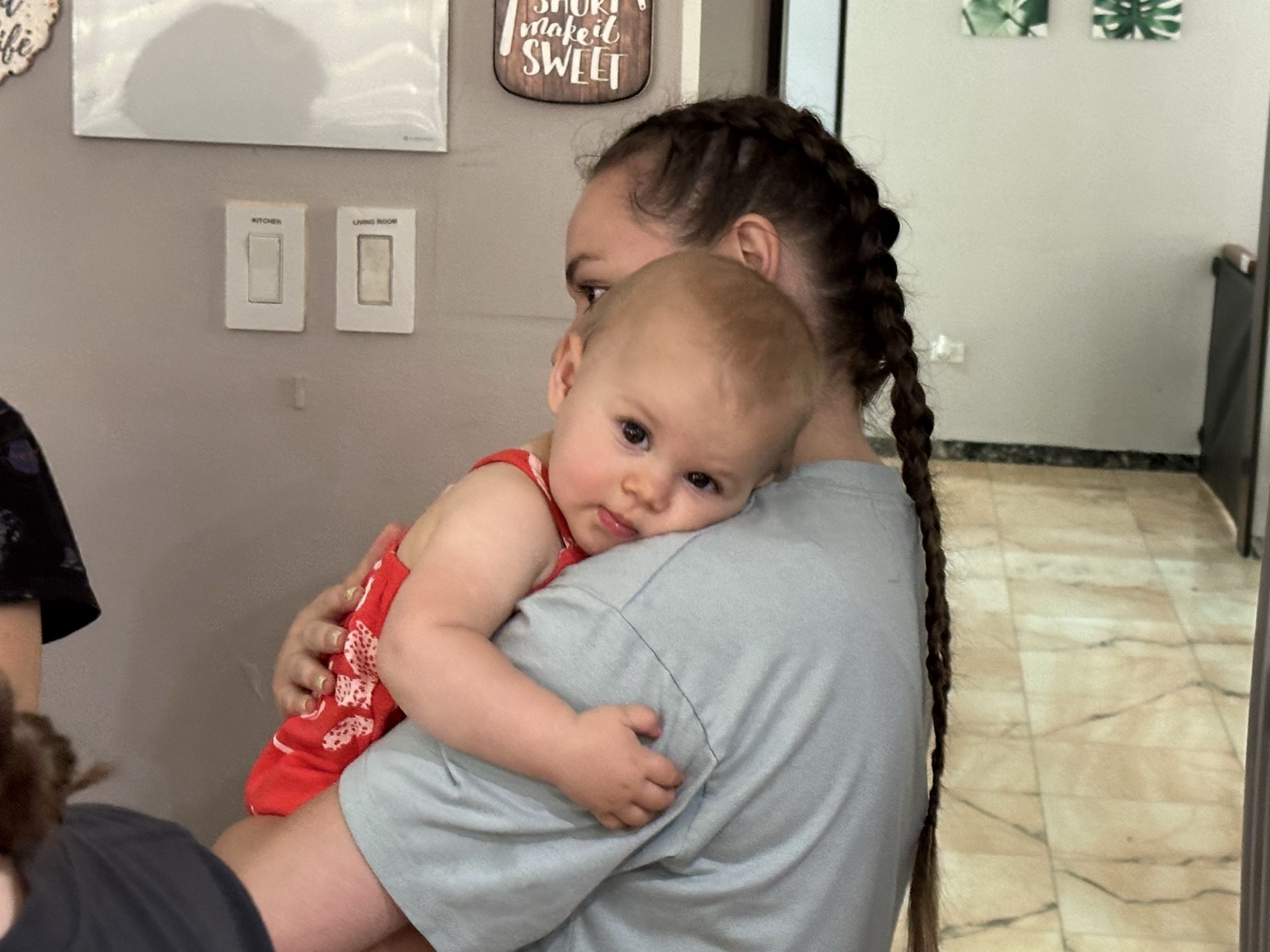 Eva decided just in the previous couple of weeks to start being shy about other people, especially when Kelsi or Chase are around. But she relented and gave Erika a snuggle, which was cute.
