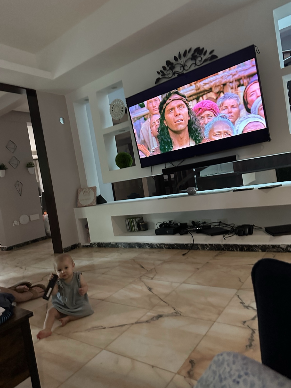 While we were watching, Eva got hold of the remote, so I joked that babies have an uncanny ability to not only turn off the TV, but also to modify settings to make it so you can't continue to watch.