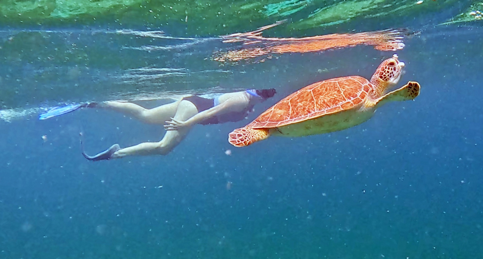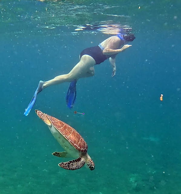 Here's a 1.5-minute video of Kelsi swimming with the sea turtle.