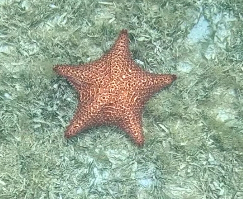 - I saw three Red Cusion Starfishes. One was white, which is apparently how these start out when they're young.