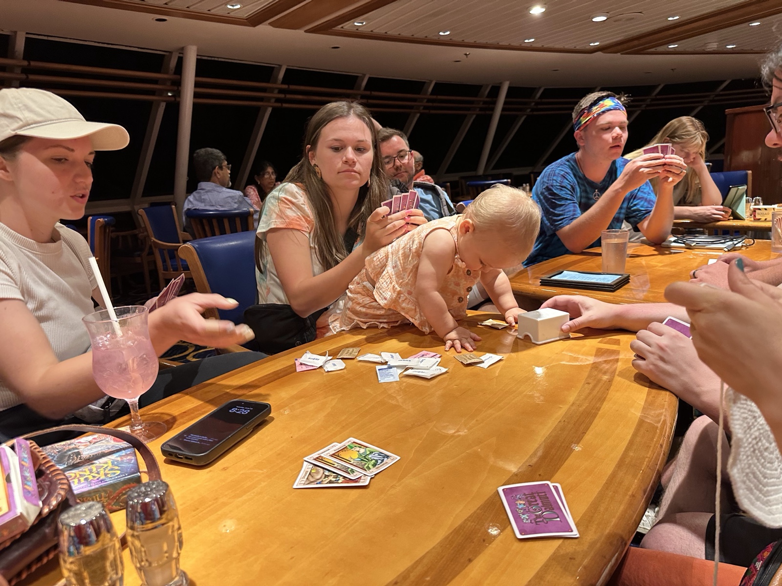 That evening we found some tables in the Windjammer cafe where we could play games while we snacked on even more food.