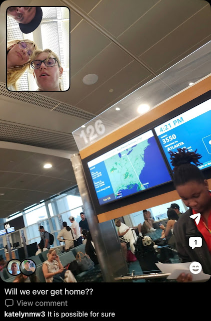 While all this was going, on Kyle, Shaylee and Mikayla were struggling with their flights. One got delayed enough that they would miss their connection, so they took a different flight to Orlando. But then the flight out of there got cancelled or something, so they were still wondering what was going to happen.