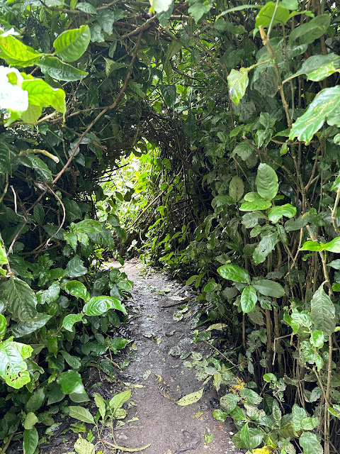 It was a beautiful day, and the jungle was lush and beautiful. The beginning of the trail had a narrow cement path.