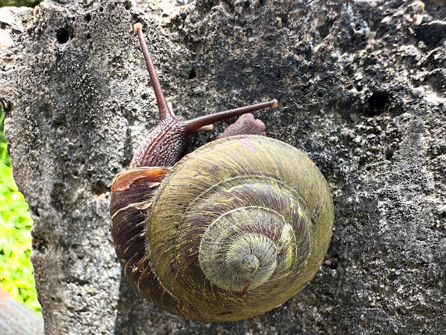 As we started back down, I saw another of these snails, which is apparently a "Puerto Rican Painted Snail" (aka "Puerto Rican Tree Snail", or a Caracolus caracolla). Now that I know what it's called, I really want to paint one with a little Puerto Rican flag.