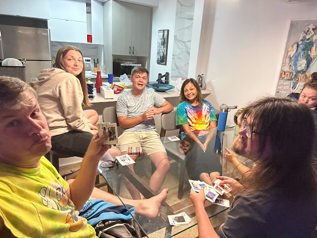 During our last evening in Puerto Rico, we watched a movie and played St. Lucia Sadness with our new deck of cards from there. (I just got the King of Spades, which is Very Sad.)