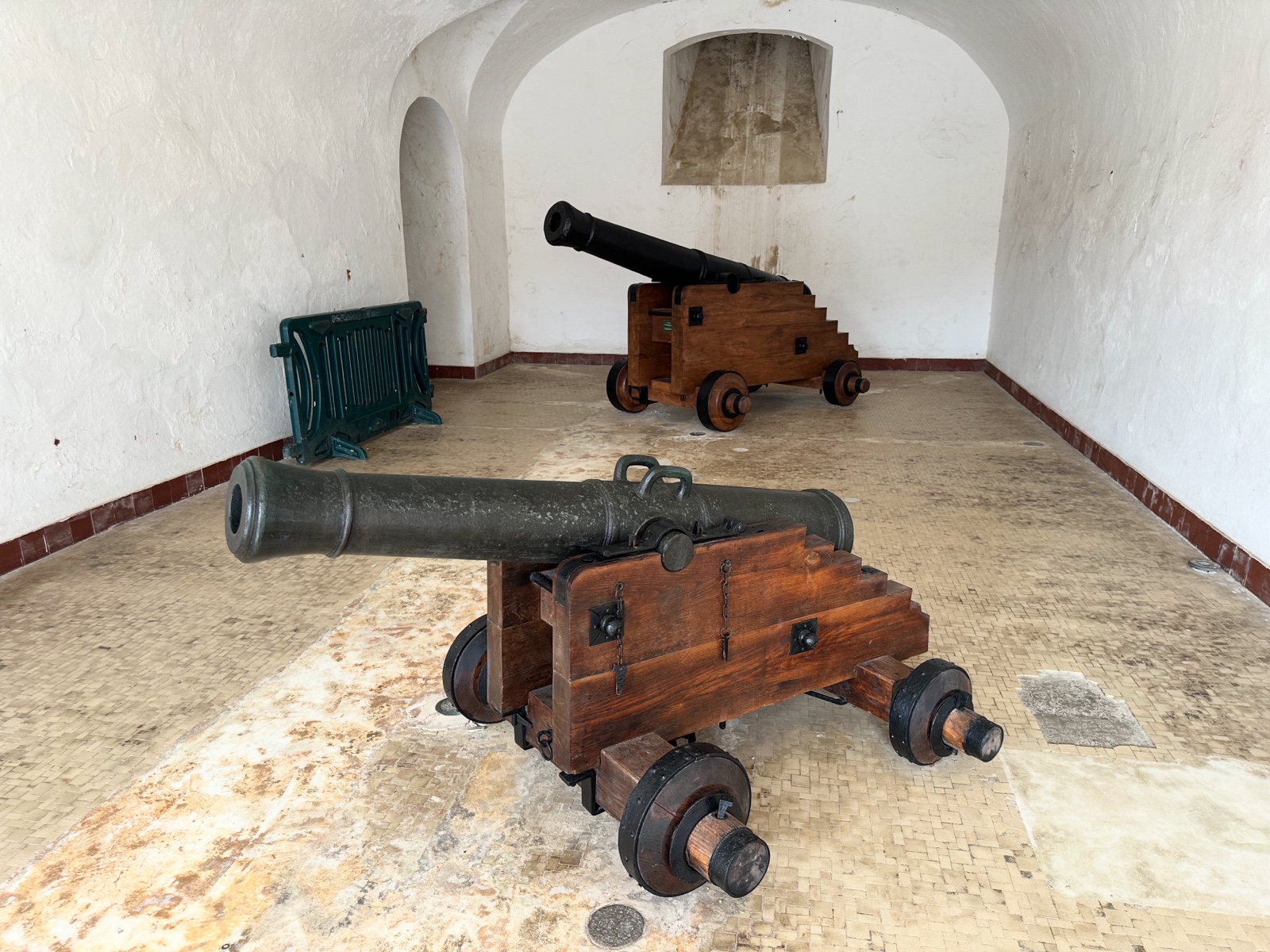 I thought people had gone into the fort, so I bought a ticket, only to find that they hadn't. So I spent a few minutes wandering around and getting a look at the place. Here are some gun emplacements.