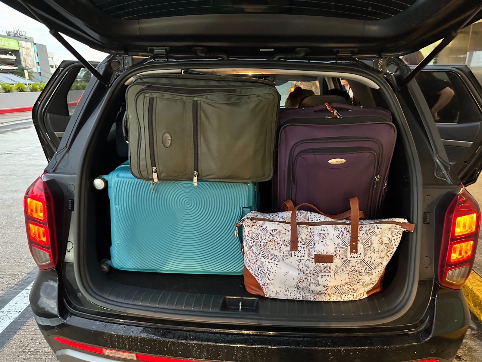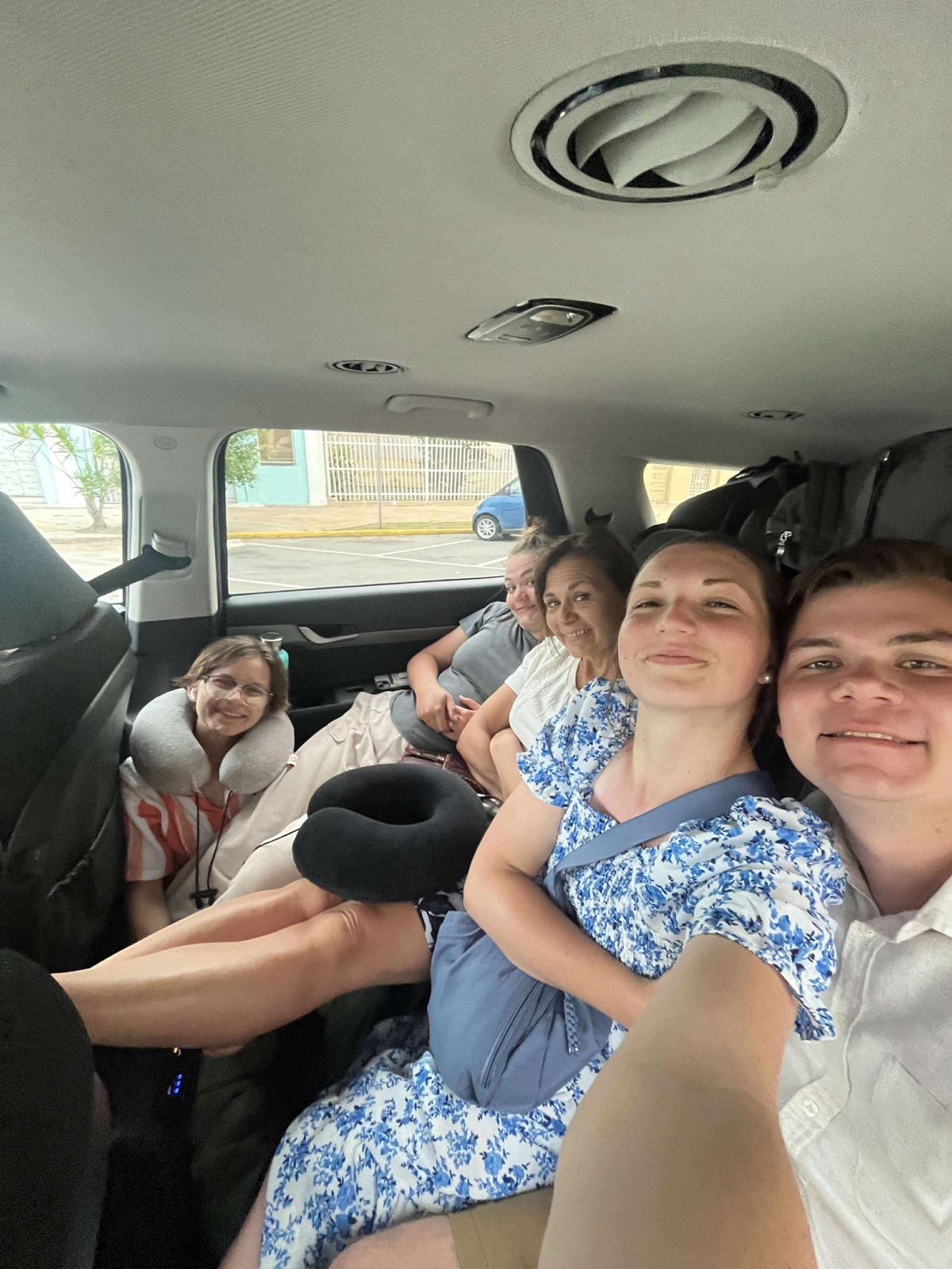 After our lovely time exploring Old San Juan, we began the task of seeing how in the world seven of us could fit in a small SUV with all our luggage. It turns out, we had to do it about like this.