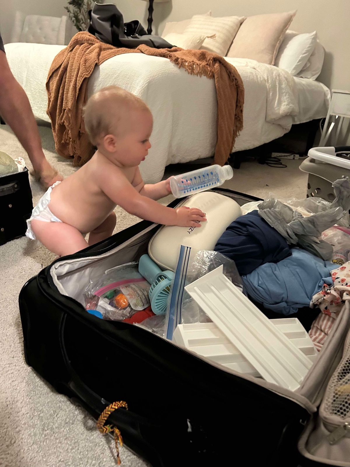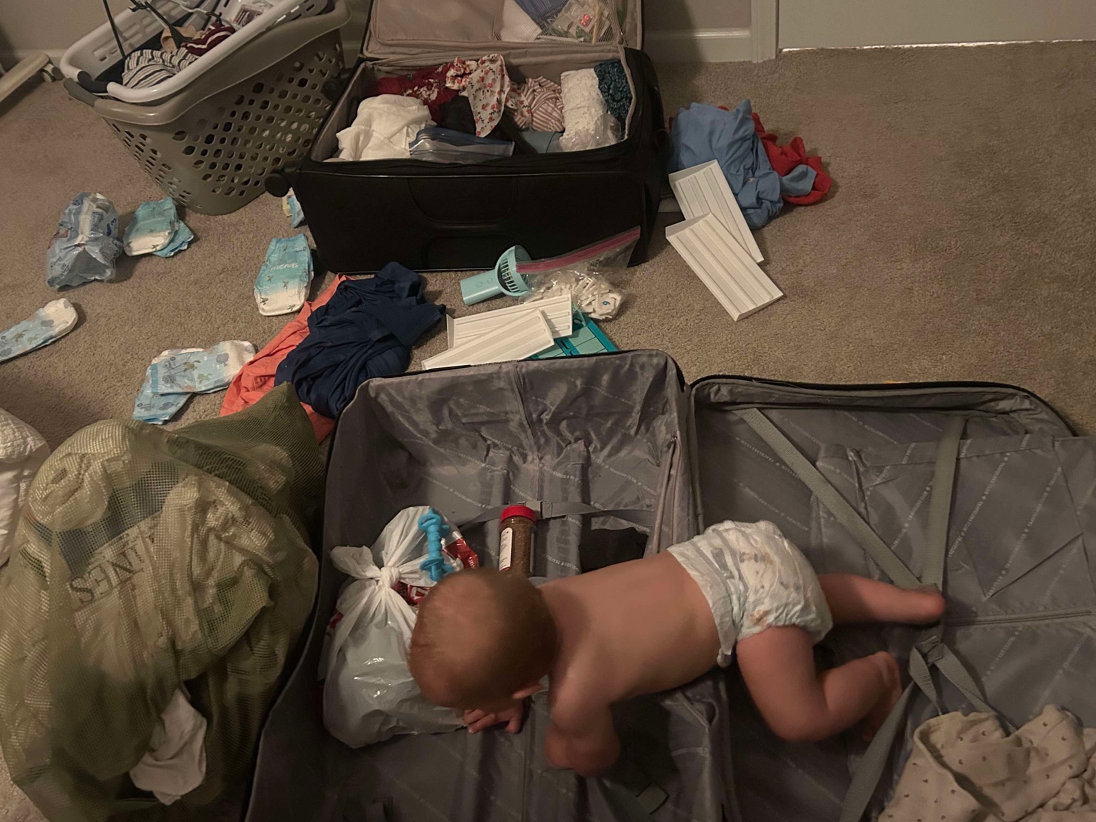 Meanwhile, Kelsi & Chase had gotten home no problem on their direct flight. After seeing Eva's skills in emptying the packet boxes, it was cute when Kelsi said that they were home safely and that Eva was happy at work unloading the suitcase.