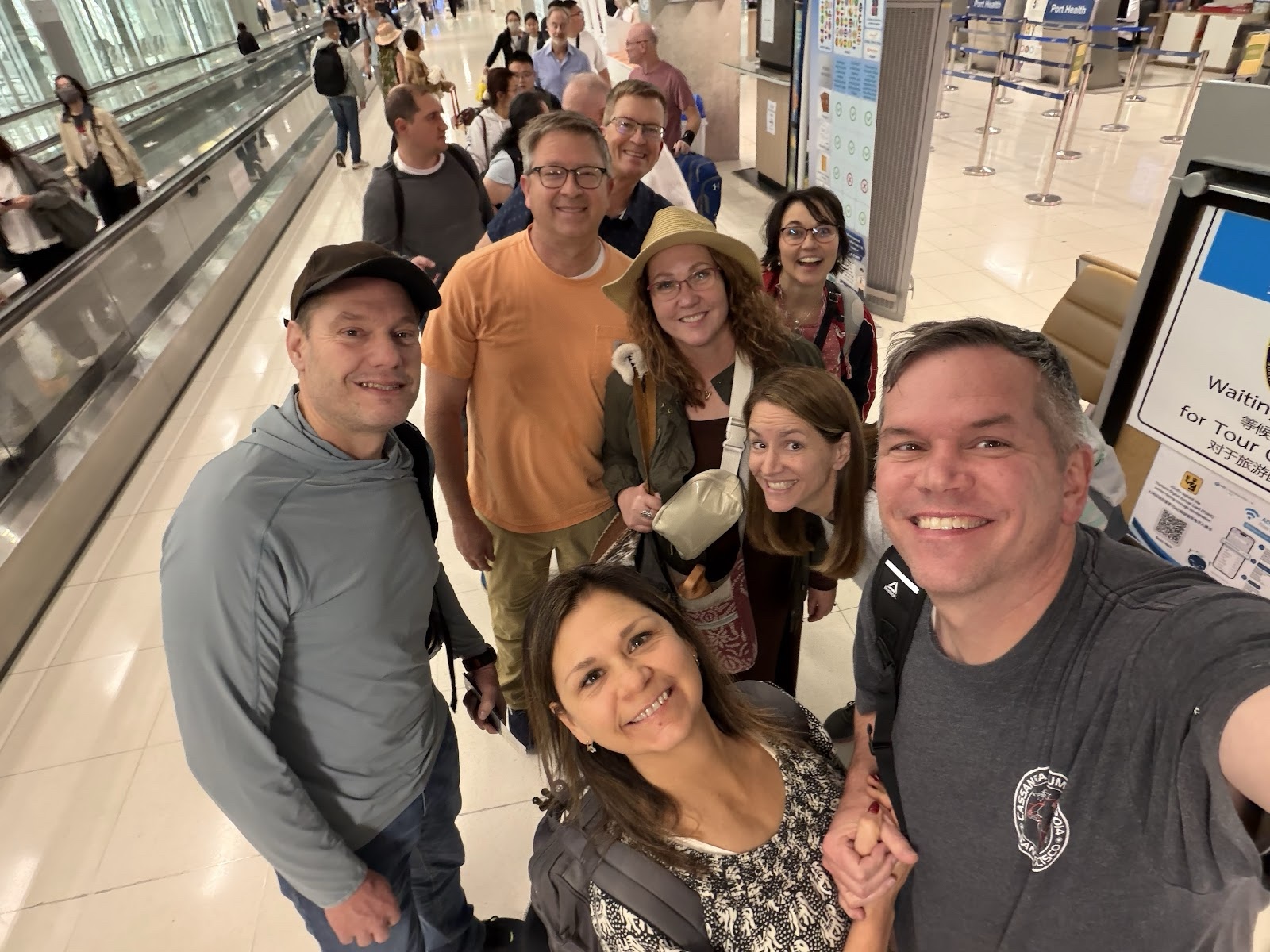 On Saturday, January 17, 2026, Linette and I joined Sharon & Roger and drove up to the Salt Lake City airport. There we met Landon & Jen, and had a great time getting to know them while we waited for our flight. We flew to Seattle, where we met up with Darren & Valerie, and then took a long flight to Taipei, Taiwan, which had an interesting airport with various themes throughout.