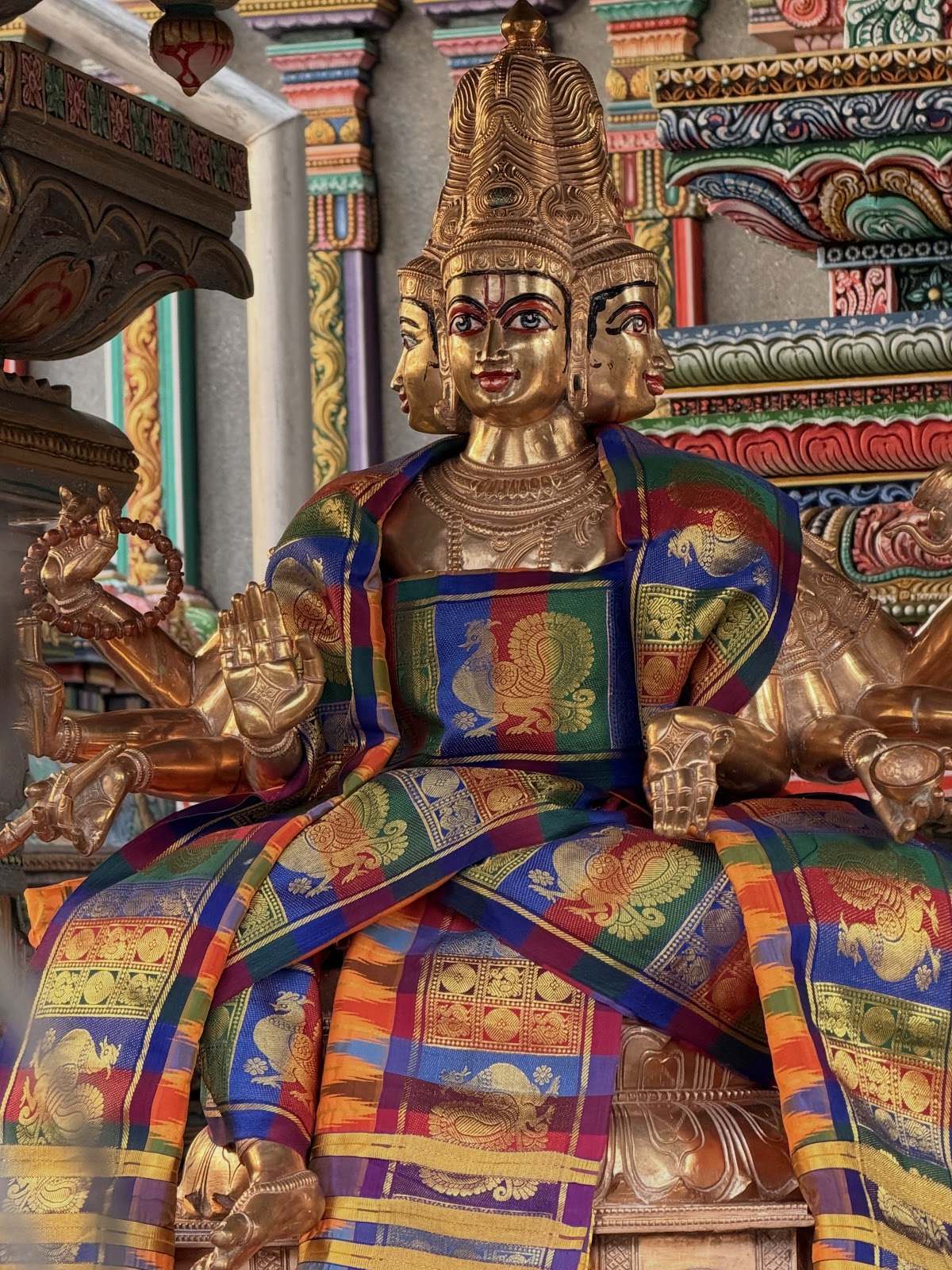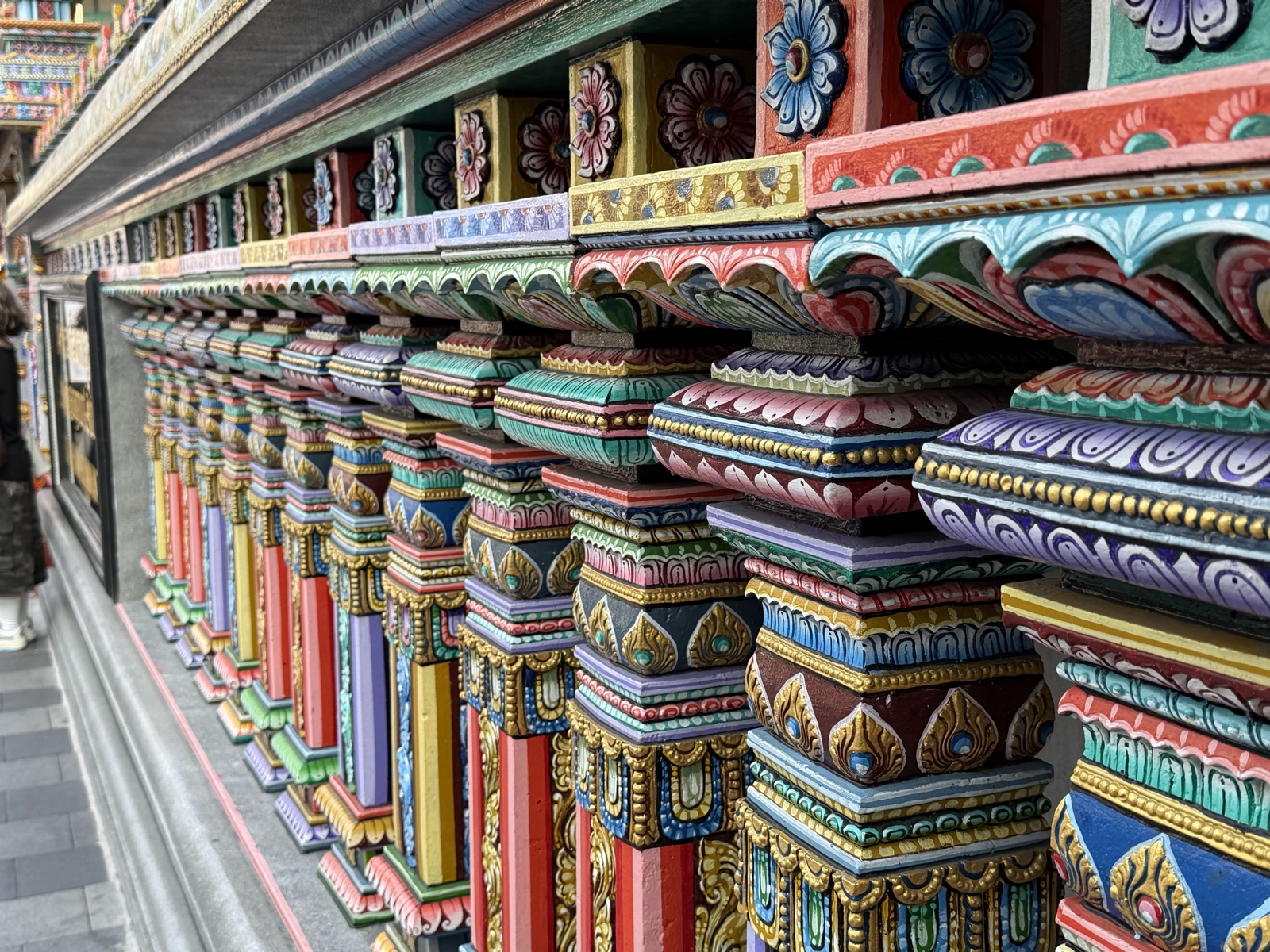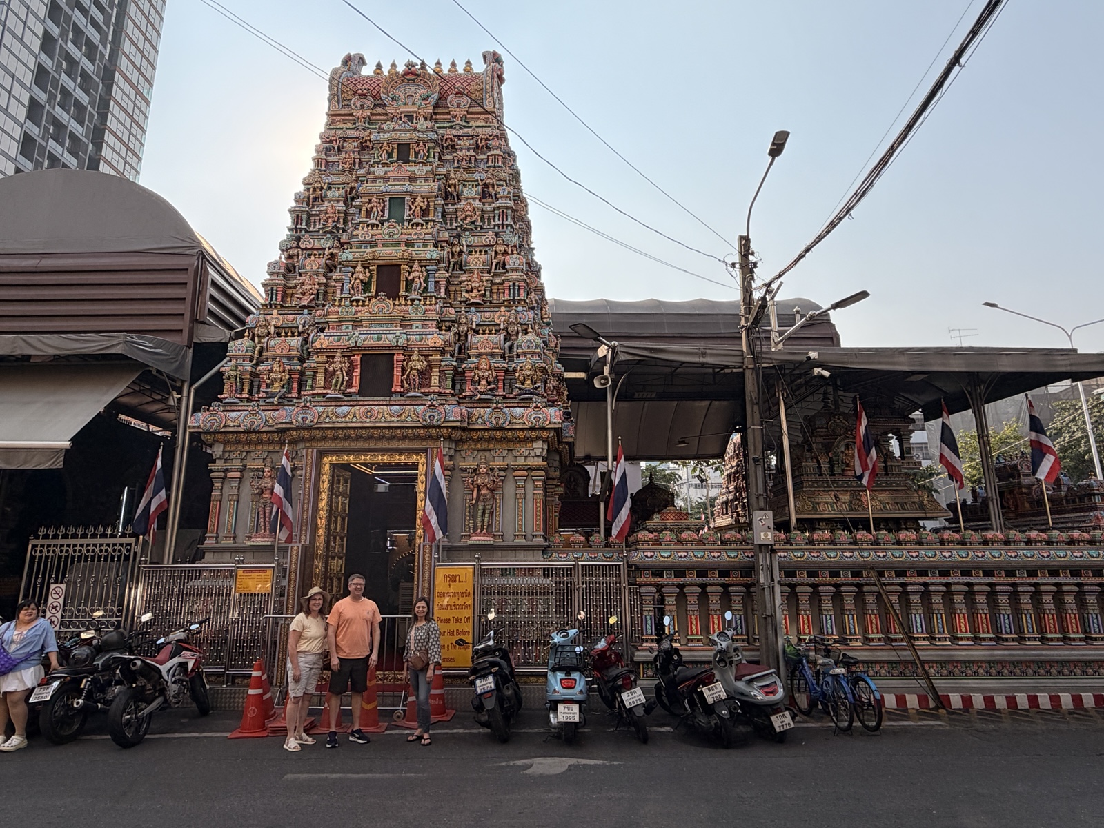 Several of those in our group walked over to see the colorful Sri Maha Mariamman Temple nearby. It is known locally as Wat Khaek (วัดแขก), where "Wat" means "temple" in Thai. Most temples in Thailand are Buddhist, but this is a Hindu temple built in 1879 by some people who came from India to avoid British rule.