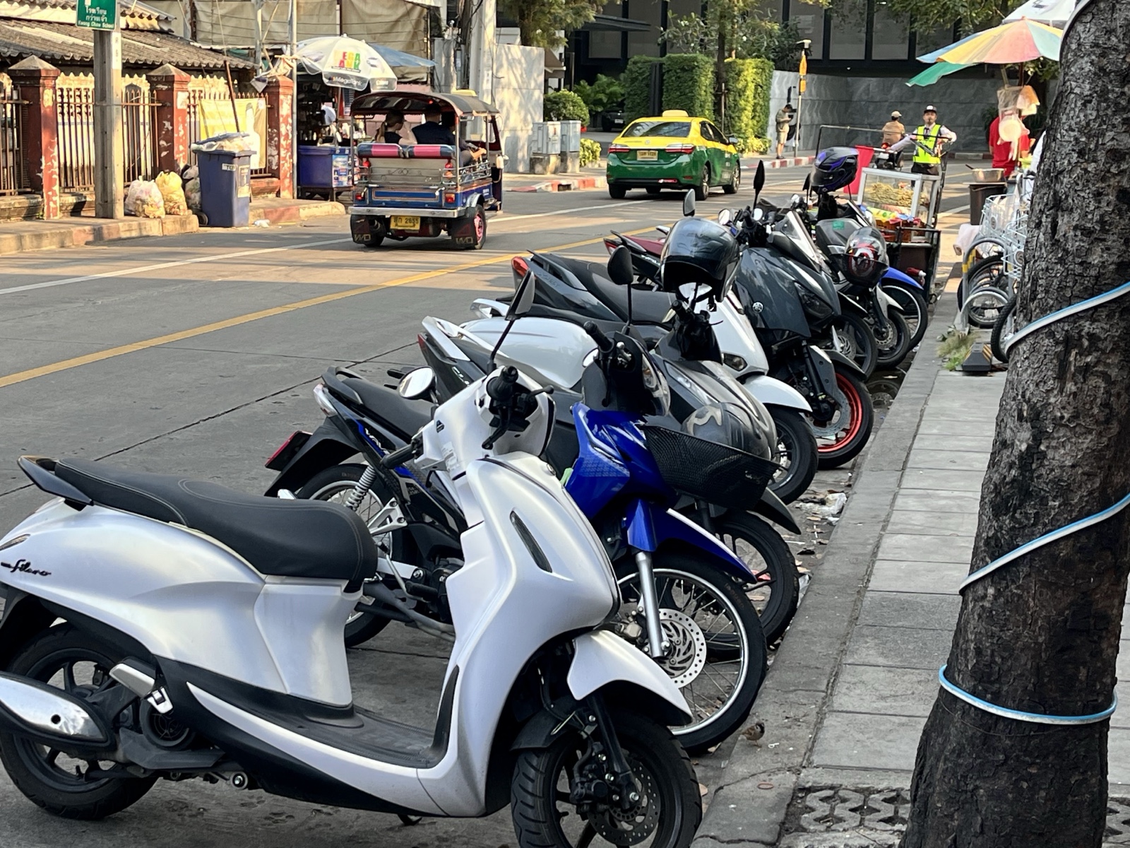 In Thailand, scooters are amazingly popular. They are way cheaper than cars, can park more places, and can go in between cars in bad traffic, making it possible to get places twice as fast. And we've seen at least 5 people riding on one at once, so it serves as a cheap minivan! You can also get killed on them, so our trip host told us not to ride them, even if he did.