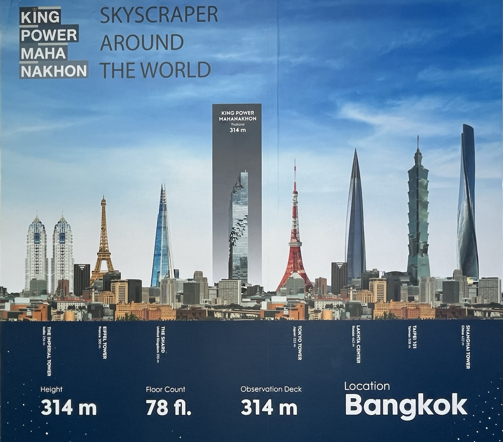 The Maha Nakhon building is 314 meters tall (almost 1000 feet), and is the tallest building in Bangkok. Here is how it compares to other buildings around the world.