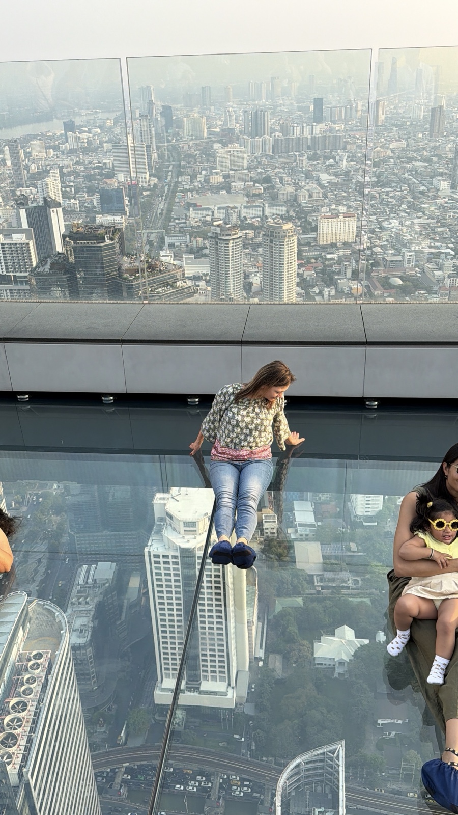 The building had a net you could lie on and look straight down from 314 meters up (almost 1000 feet). We chose not to pay extra for that.