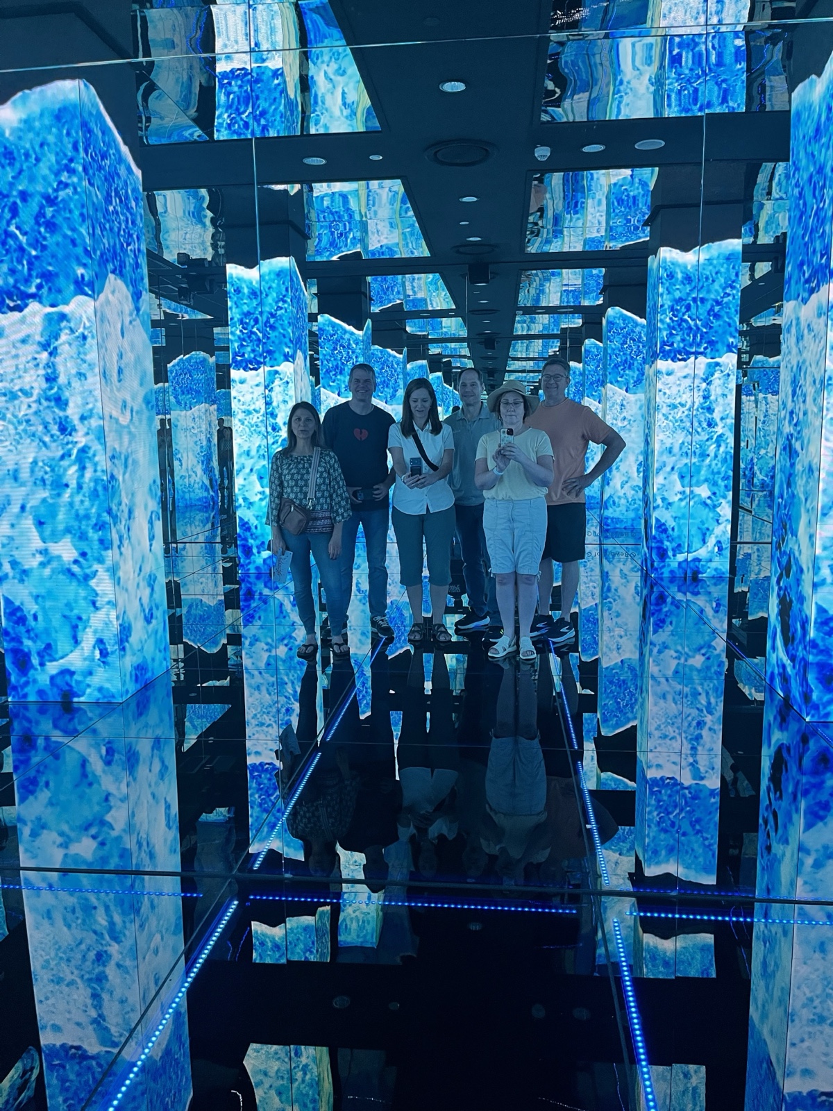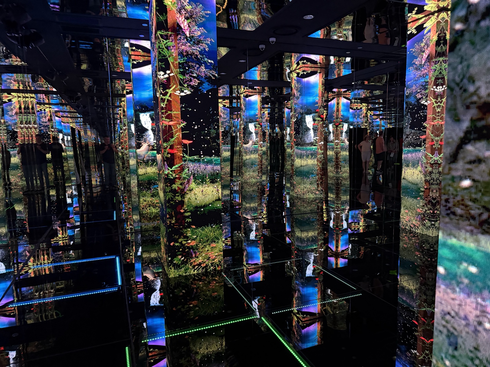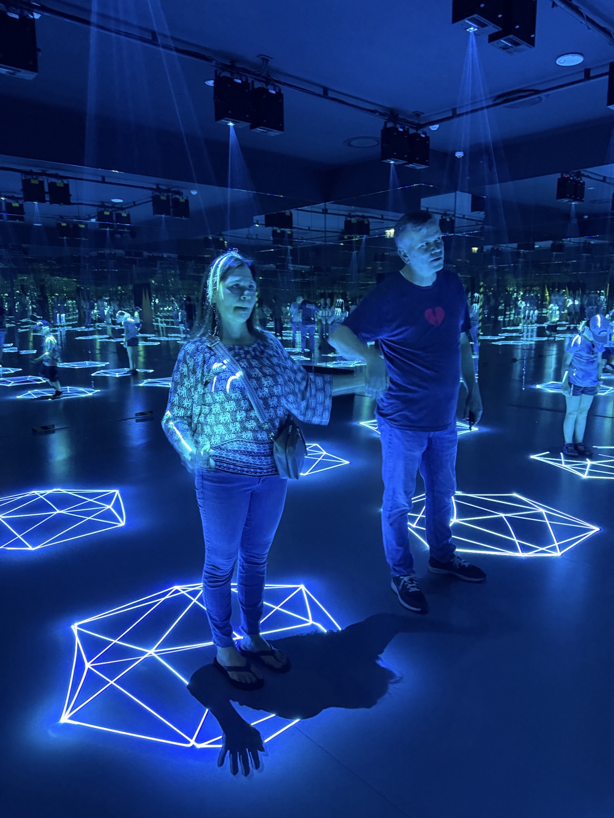 One room had animated lasers shining down from the ceilings, with mirrors on all the walls to make it look like it went to infinity.