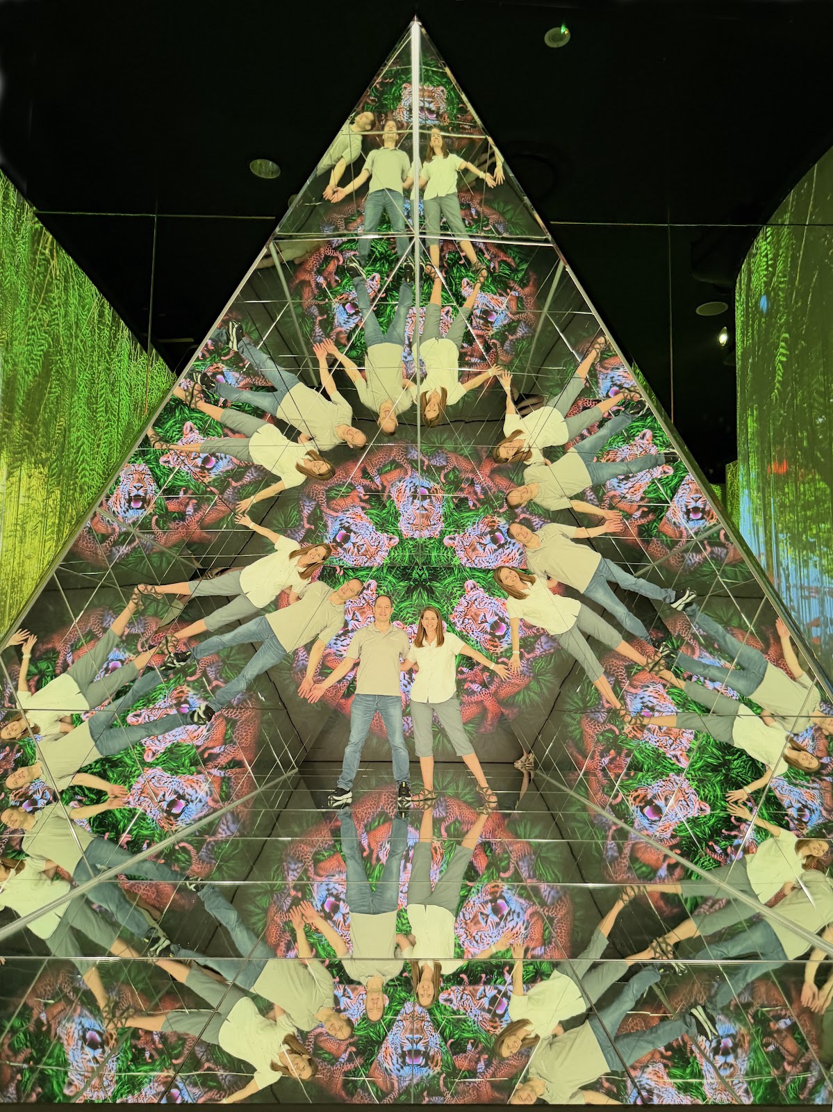 There was a triangle mirrored hallway that made it look like a kaleidoscope.