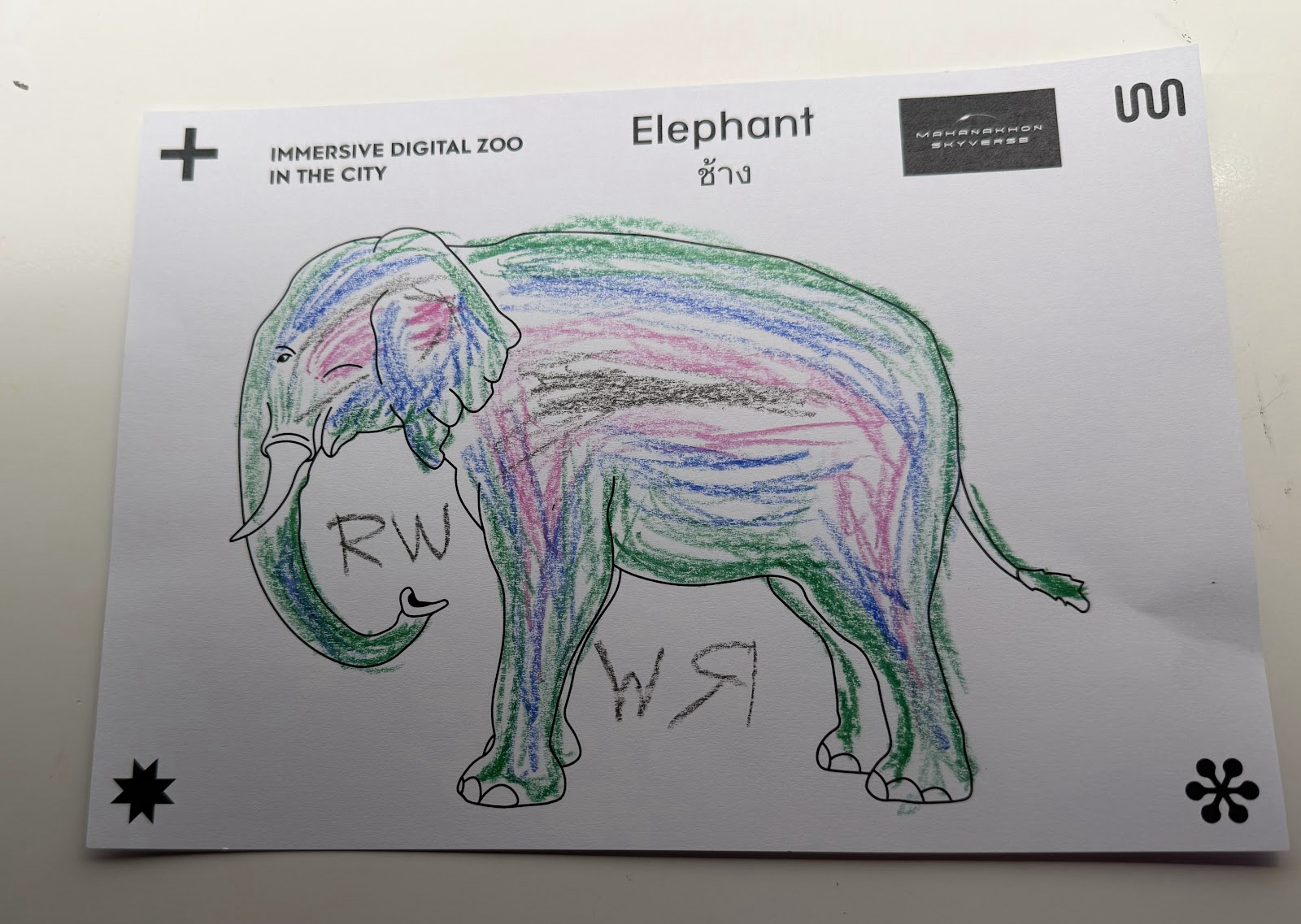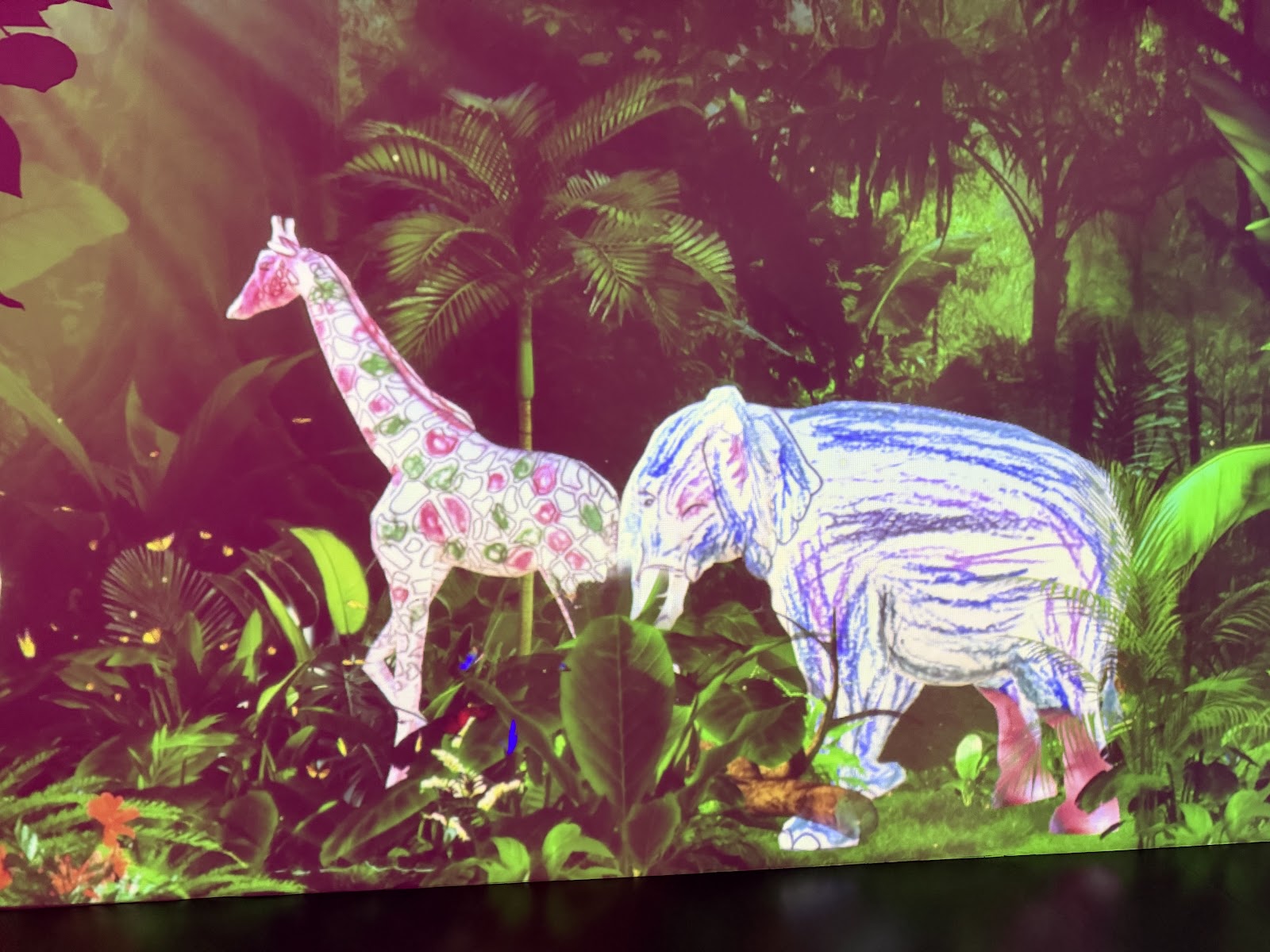 There was another room where you could color an animal, place it in a certain spot, and it would automatically get scanned and then animated on a huge wall. For example, I colored this elephant: