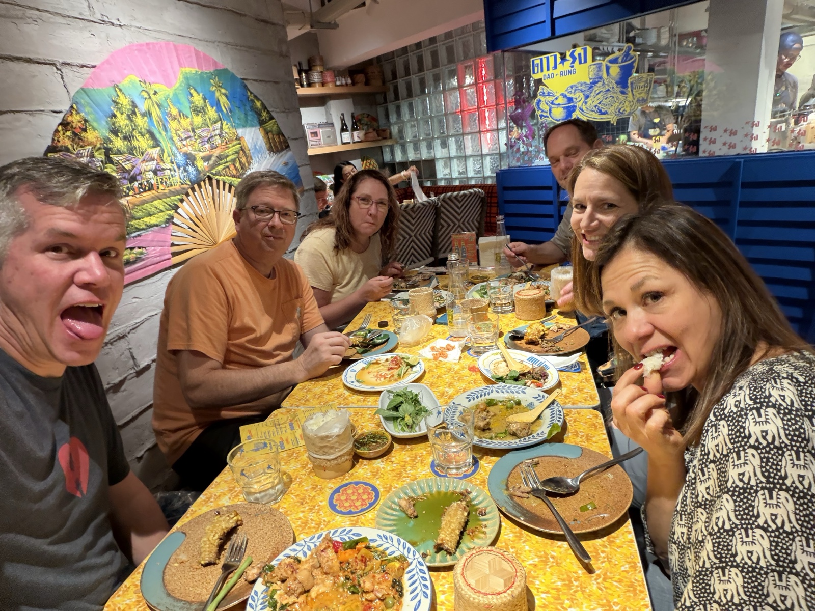 Greg and Kelly (shown here on the right) arrived by that morning, so it was fun to meet them at breakfast. They spent the day just wandering around to see what there was to see and eat.