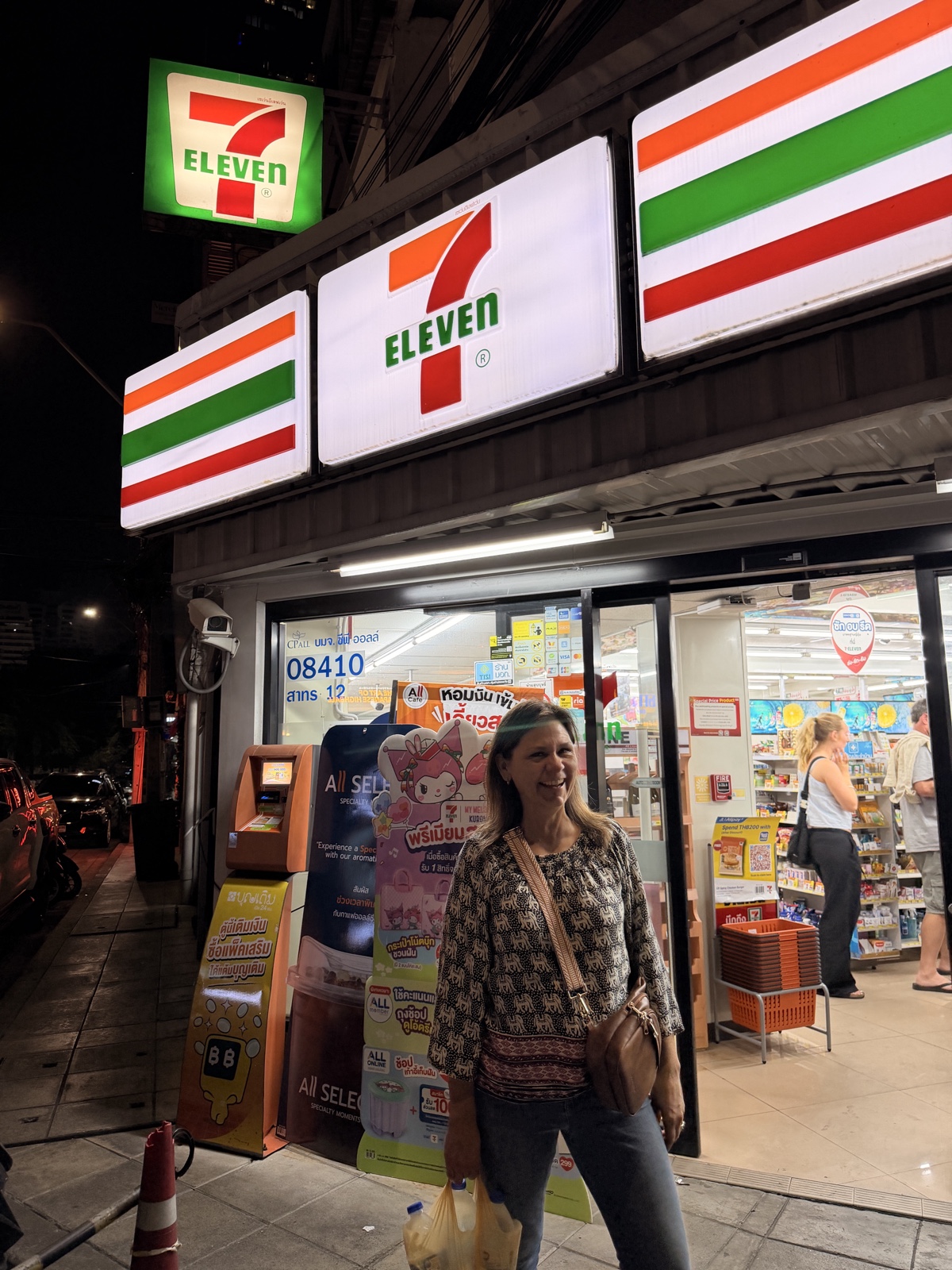 In Thailand, there are 7-Eleven stores all over the place. We needed to get some change for our large bills, so we hit the one across the street from the restaurant.