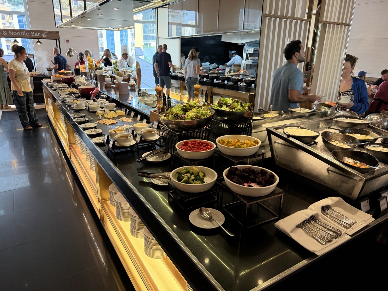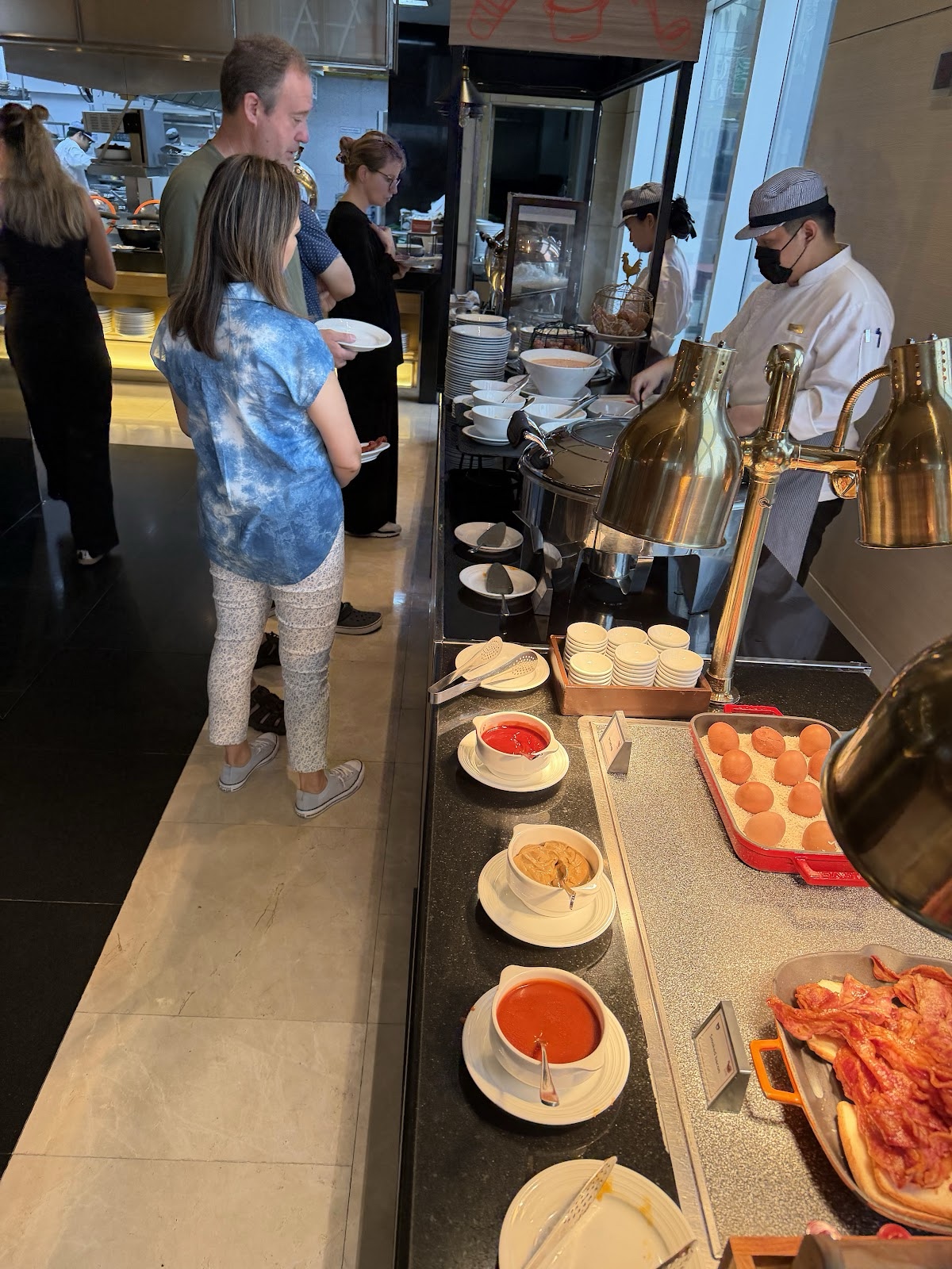 The hotel breakfast buffet was incredible. It had Asian dishes (curry chicken, soups, fried rice, sushi, etc.), American dishes (waffles, eggs, bacon), fruit smoothies, and lots of other things.