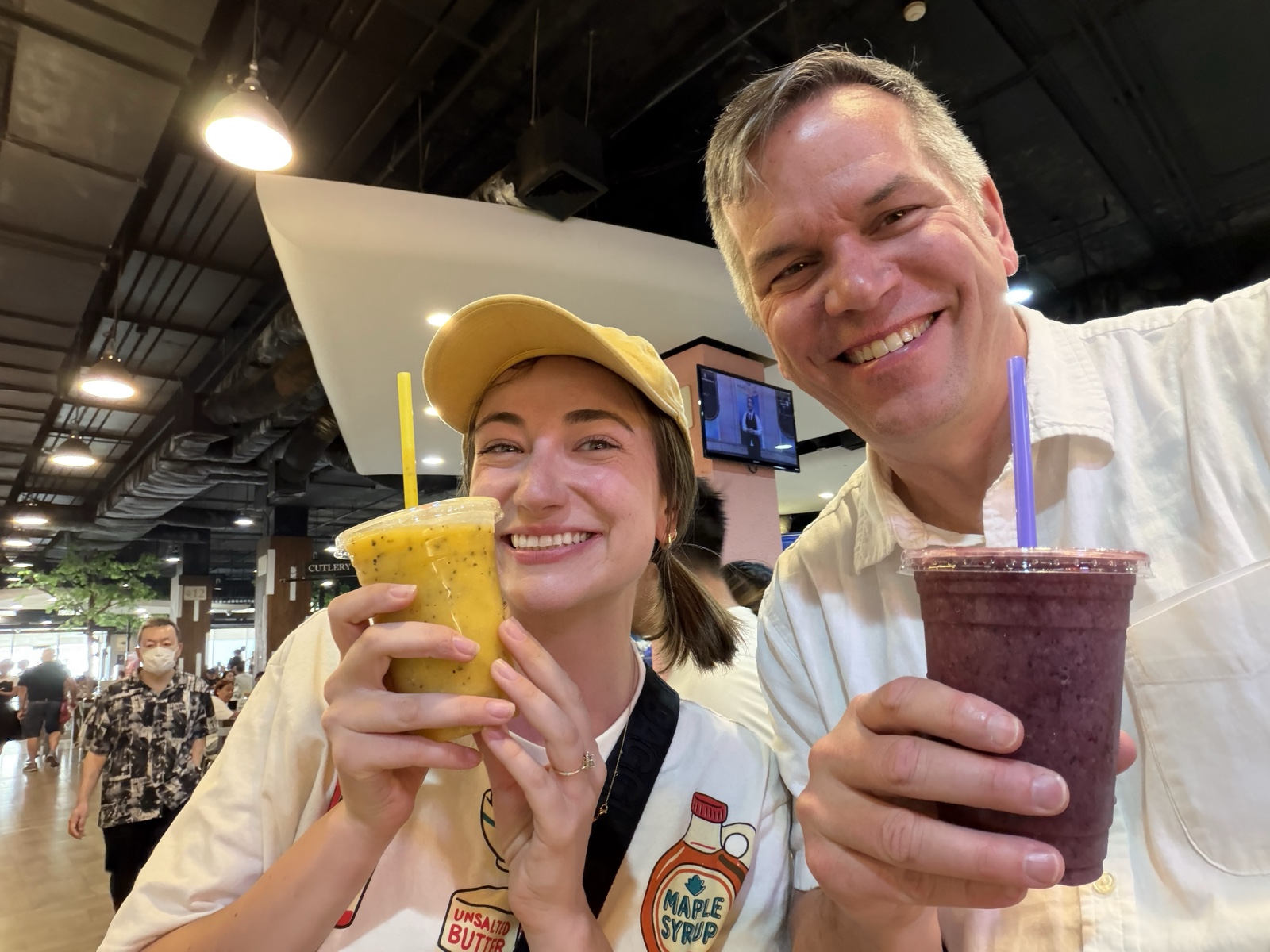 We got a couple of smoothies to calm down the spiciness of the food. Food in Thailand is tasty and inexpensive, and I usually don't feel overly bloated after eating it, so eating was one of the highlights of the trip.