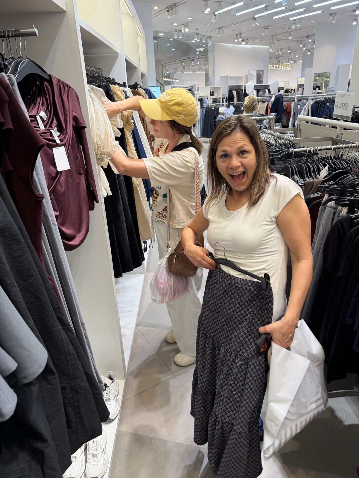 Kimber said, "I love to shop!" and had fun helping Linette find a dress appropriate for our temple visit that night and another outfit or so.