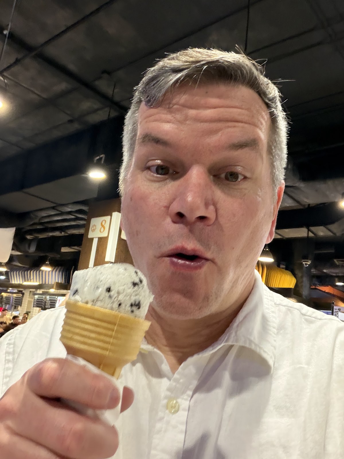 My food was pretty spicy, so I got an ice cream cone to calm down my mouth.
