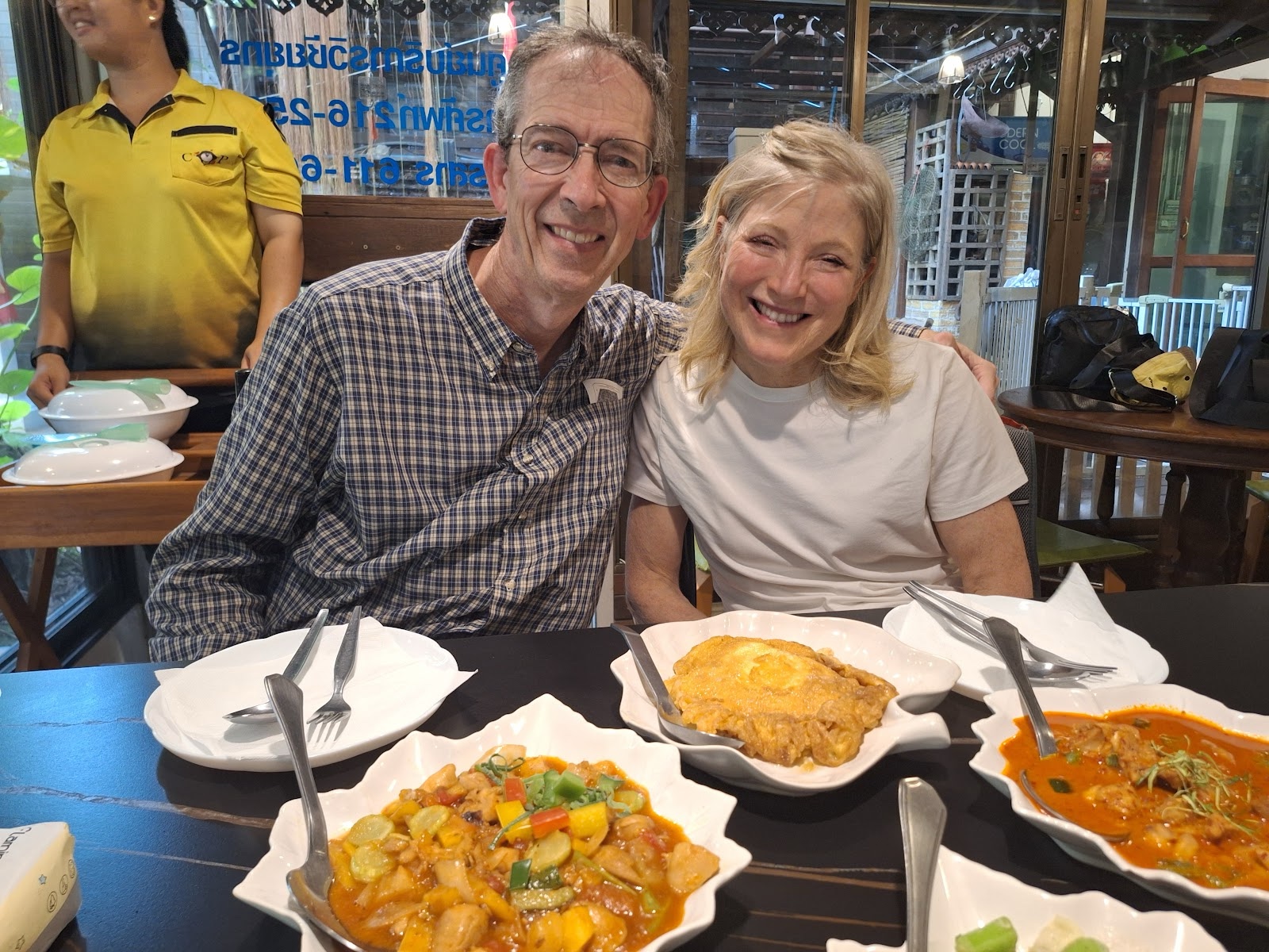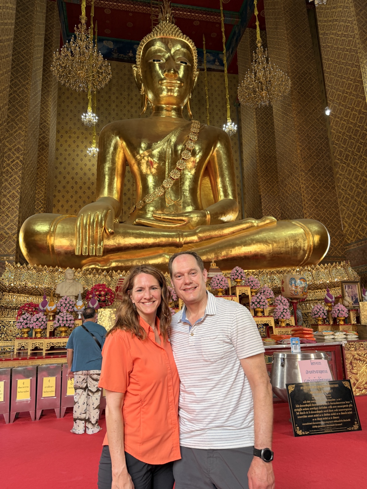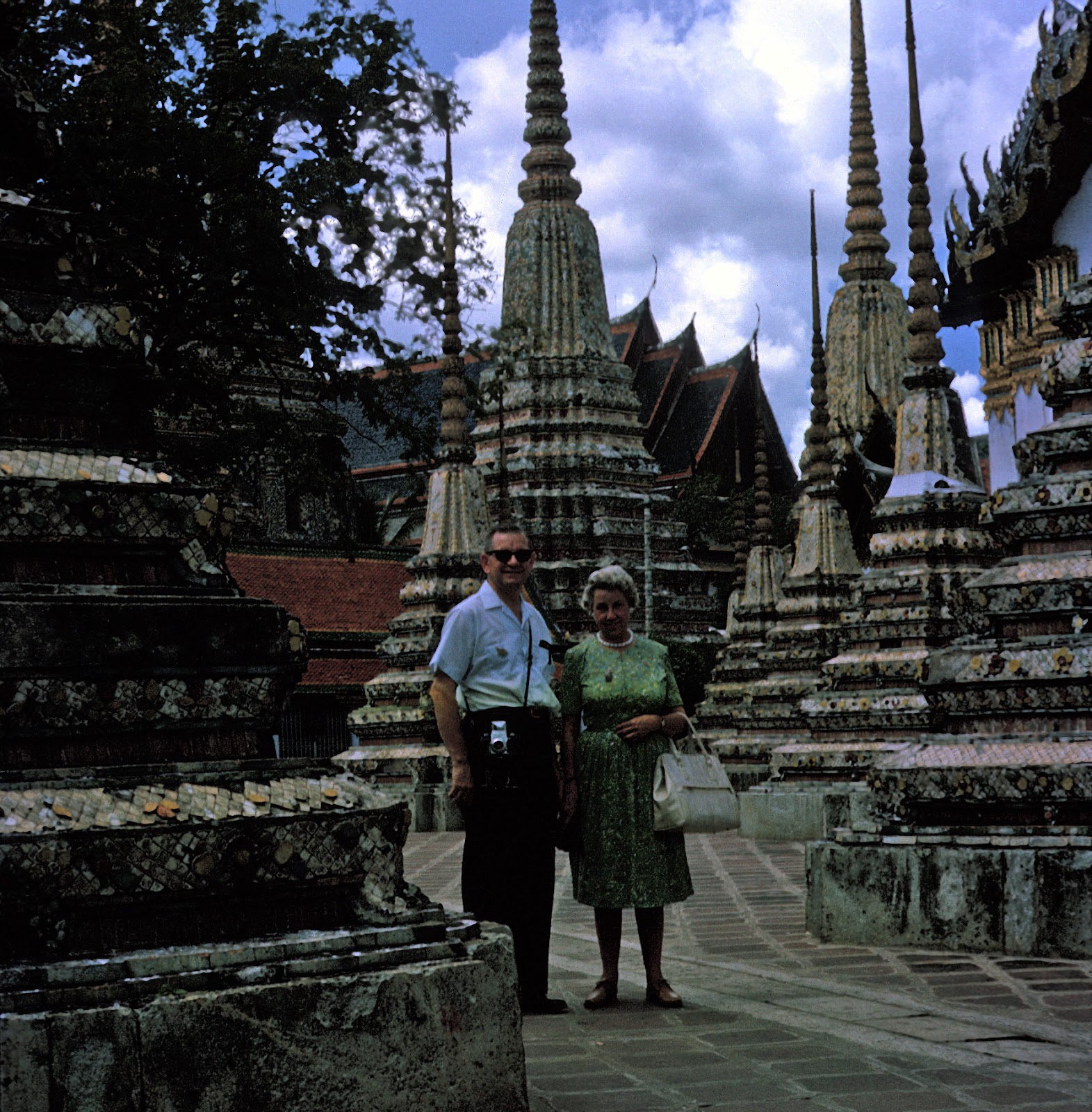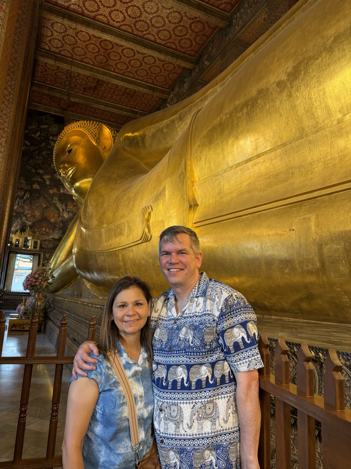 When we got home, I looked through his pictures of Thailand and found this picture of my grandparents, Malcolm & Thelma Merrill, at Wat Pho in 1963 (63 year ago!), which looks like the one of me & Linette above. I thought it was so fun that we were in the same place!