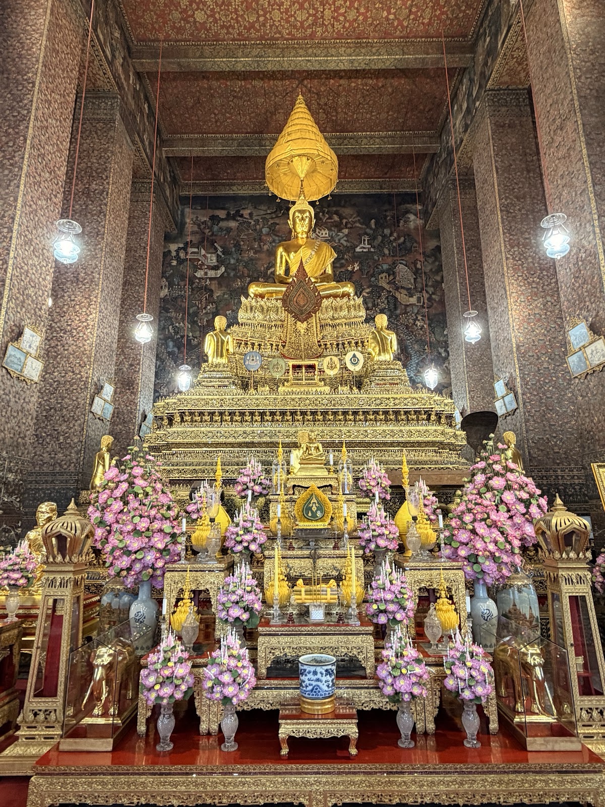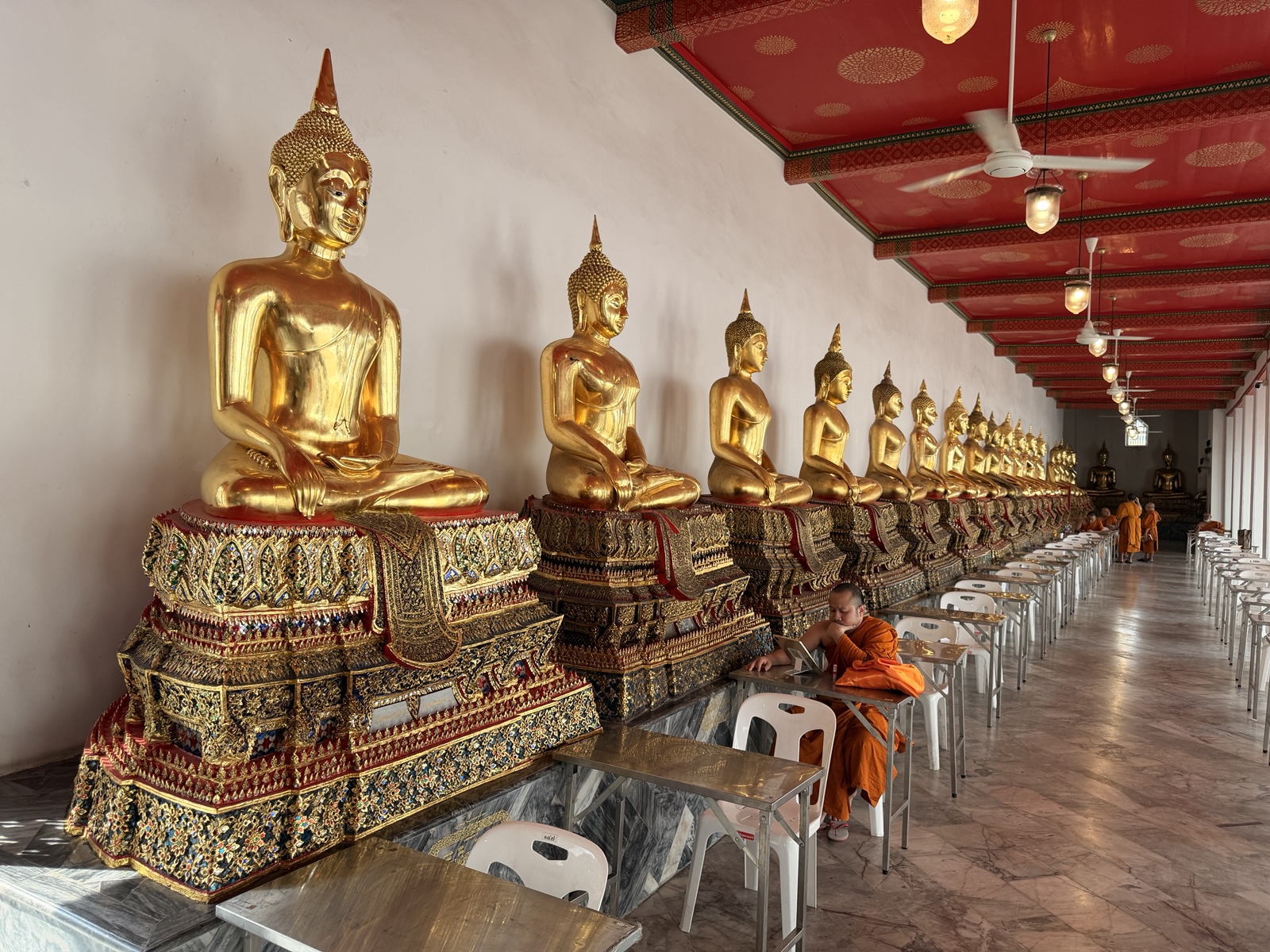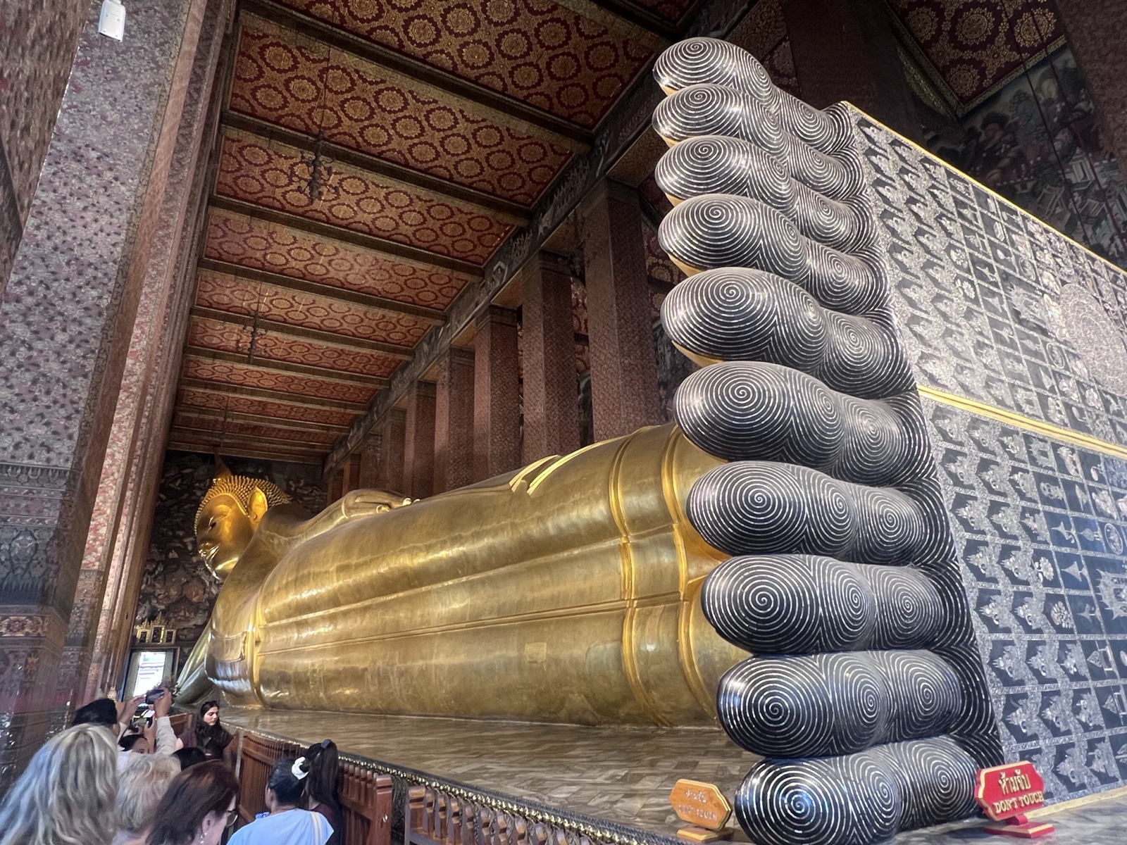 Our first stop was to see the massive reclining Buddha. It is so big, and the pillars so thick, that you can't really see the whole thing very easily.