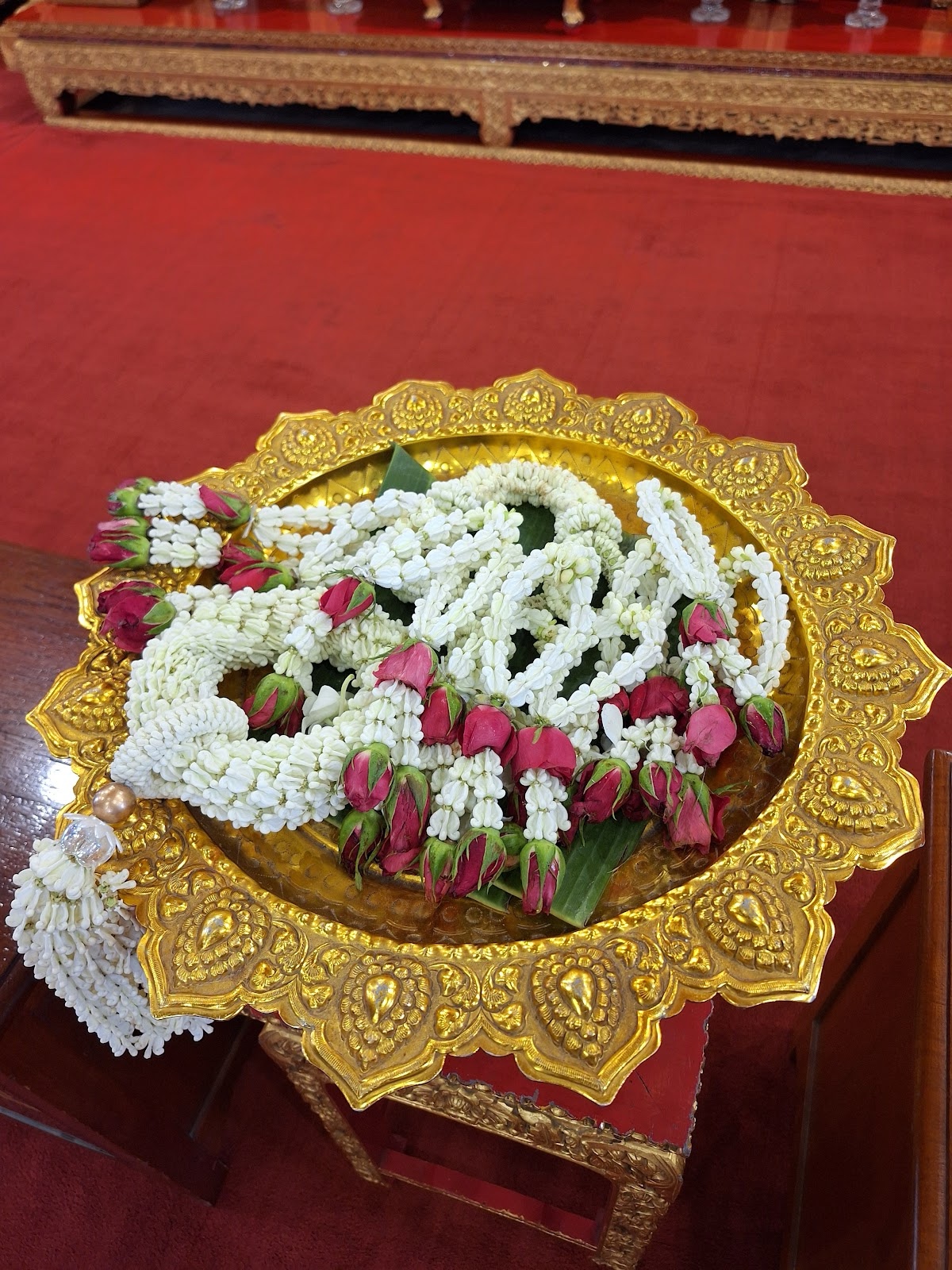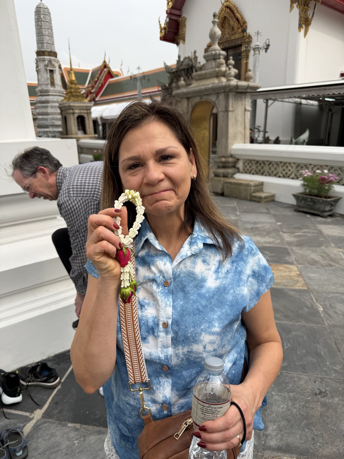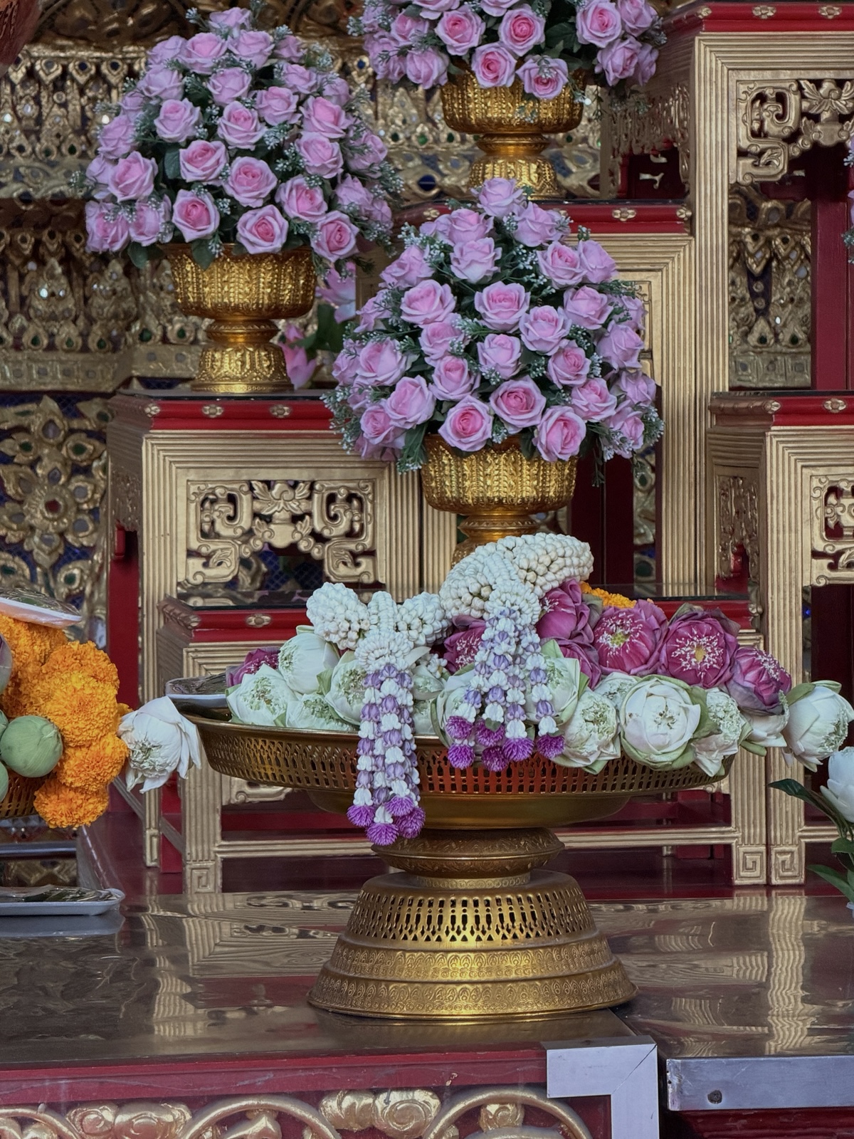 We had a special opportunity to go into the main temple when other tourists weren't in there yet. Tyler arranged for each of us to get a little wreath of flowers on our way in as we removed our shoes.
