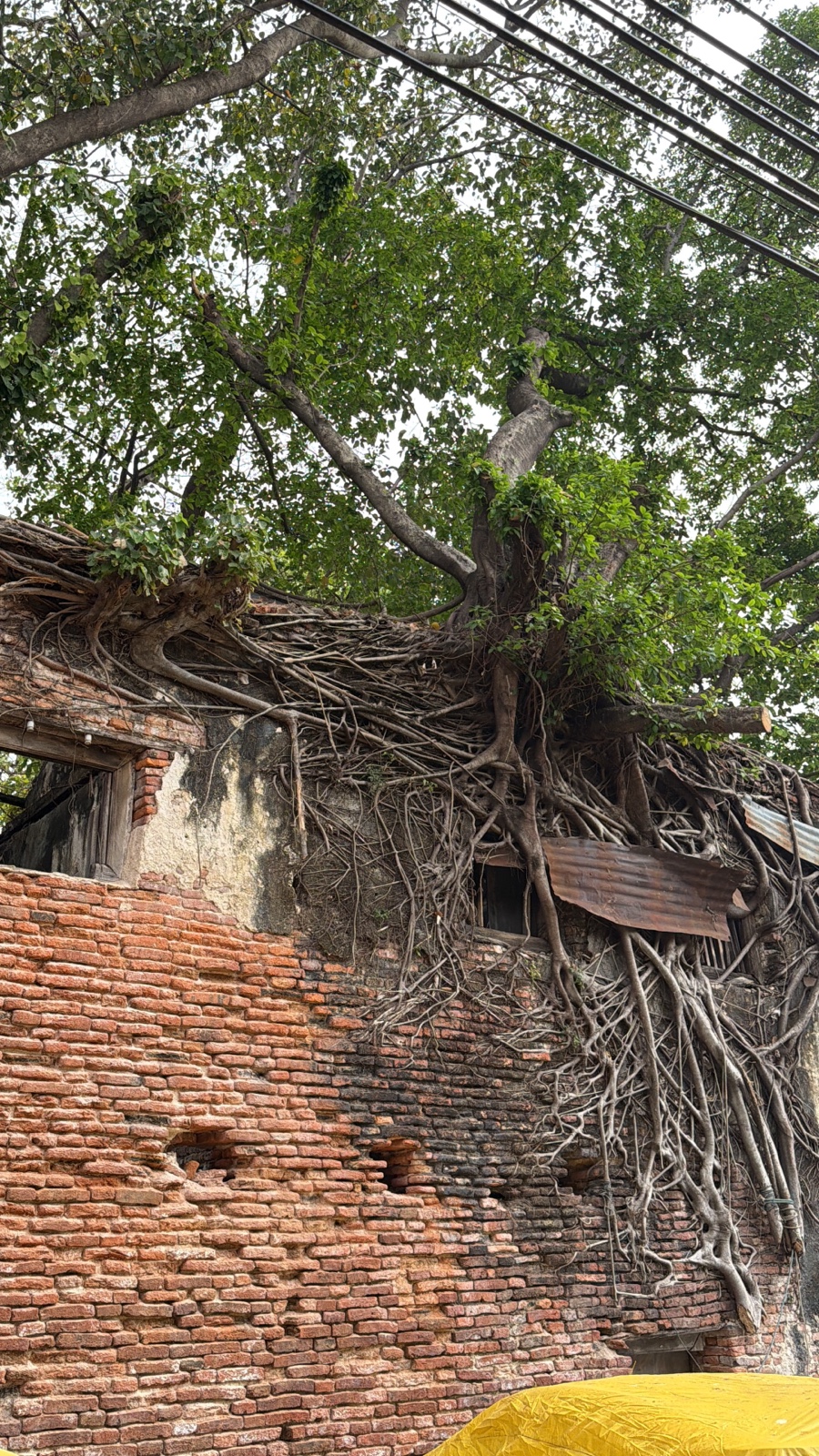 It was amazing how the roots of this tree were growing into the outer wall of this house.
