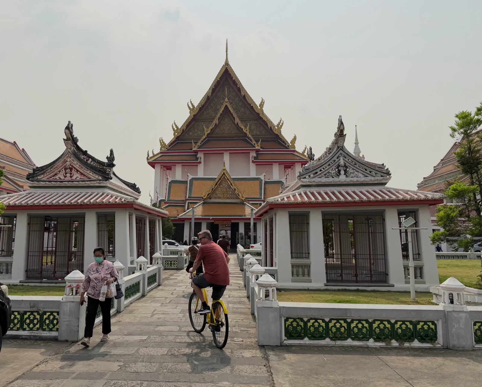 We rode to a Buddhist temple called Wat Kanlayanamit Woramahawihan (วัดกัลยาณมิตร วรมหาวิหาร). It was built in 1825. (Remember that "Wat" means "temple").