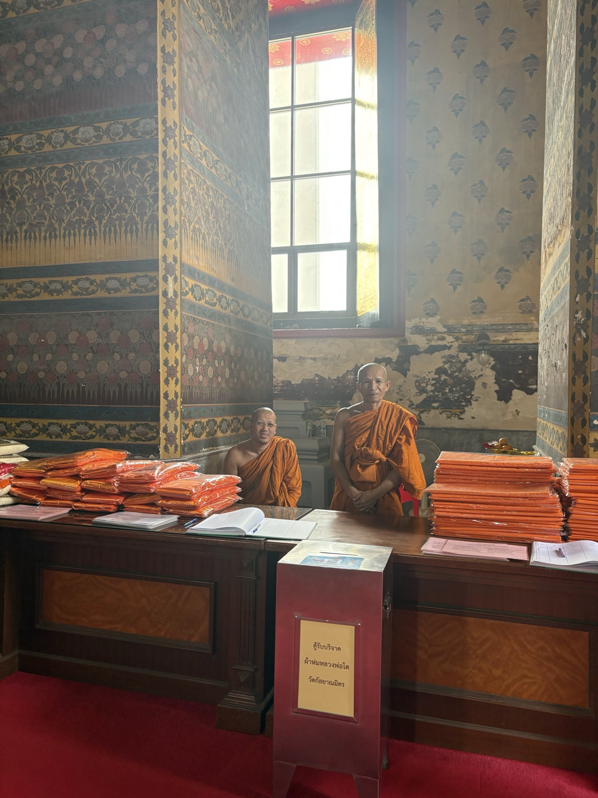 Monks can't buy their own robes, so these monks were taking donations to pay for the robes that other monks would need.