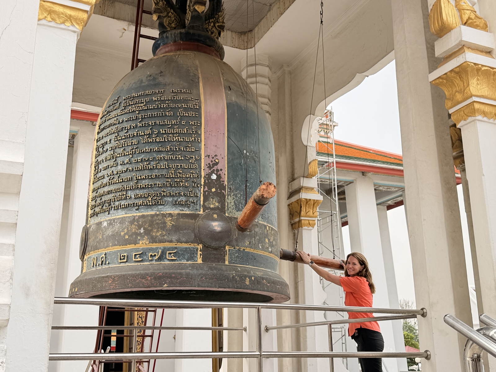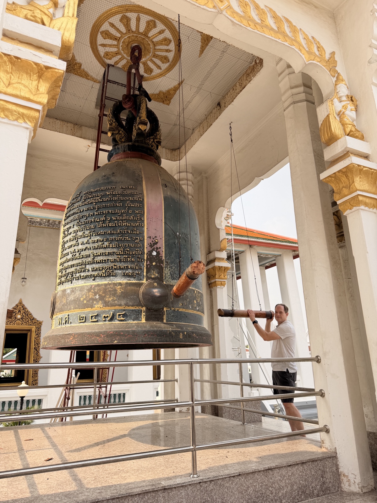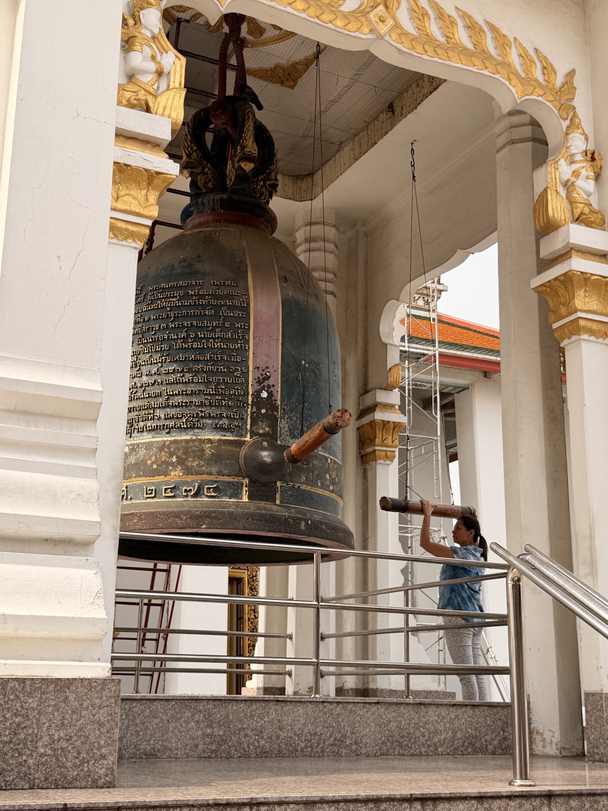 There was a huge bronze bell there. You can swing a log to ring it three times for blessings.