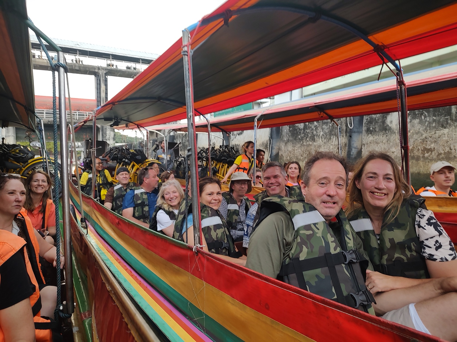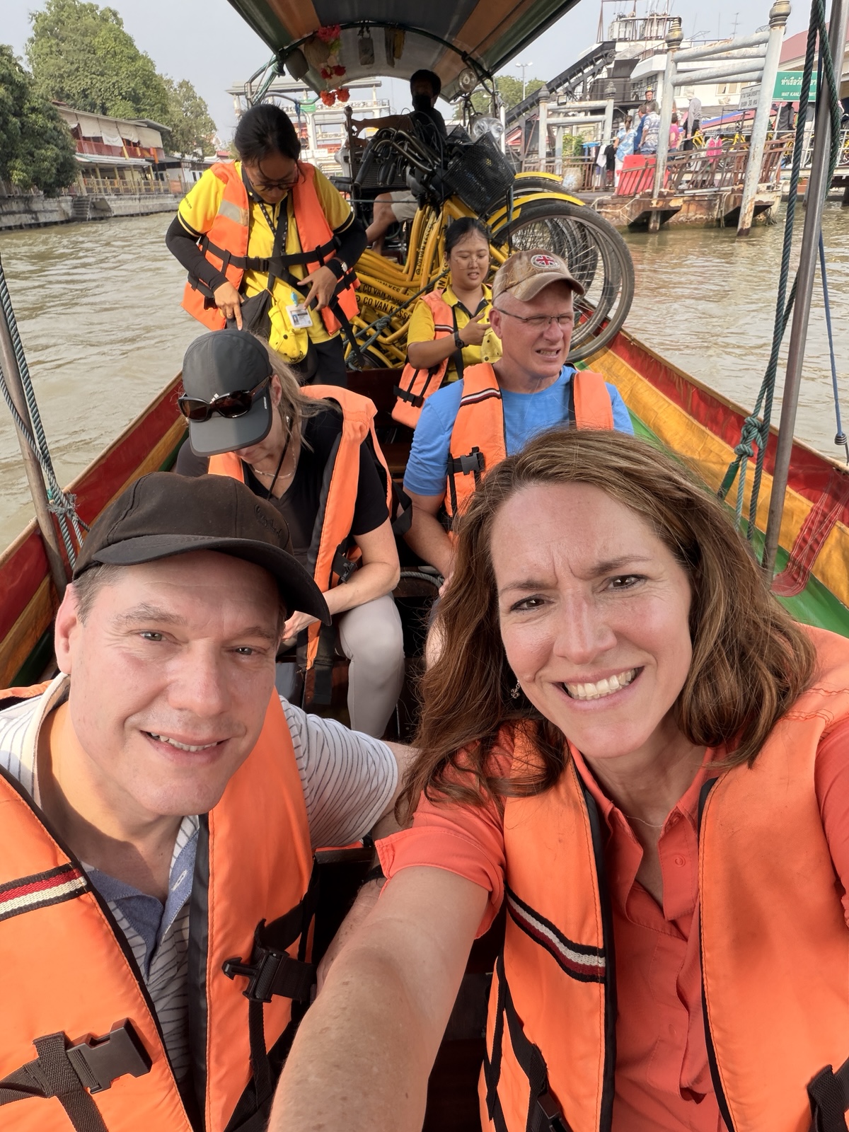 After a nice visit at that temple, we got back on the bikes and rode over to where we boarded a couple of long-tail boats.