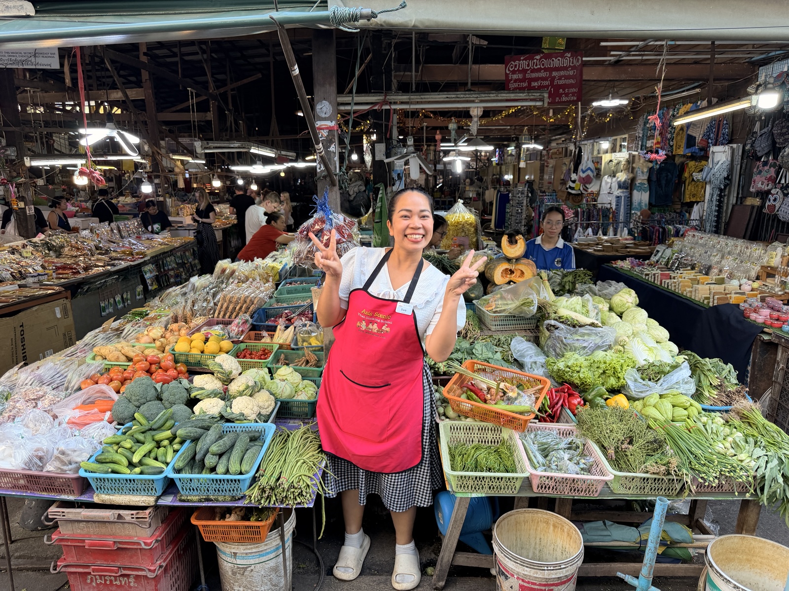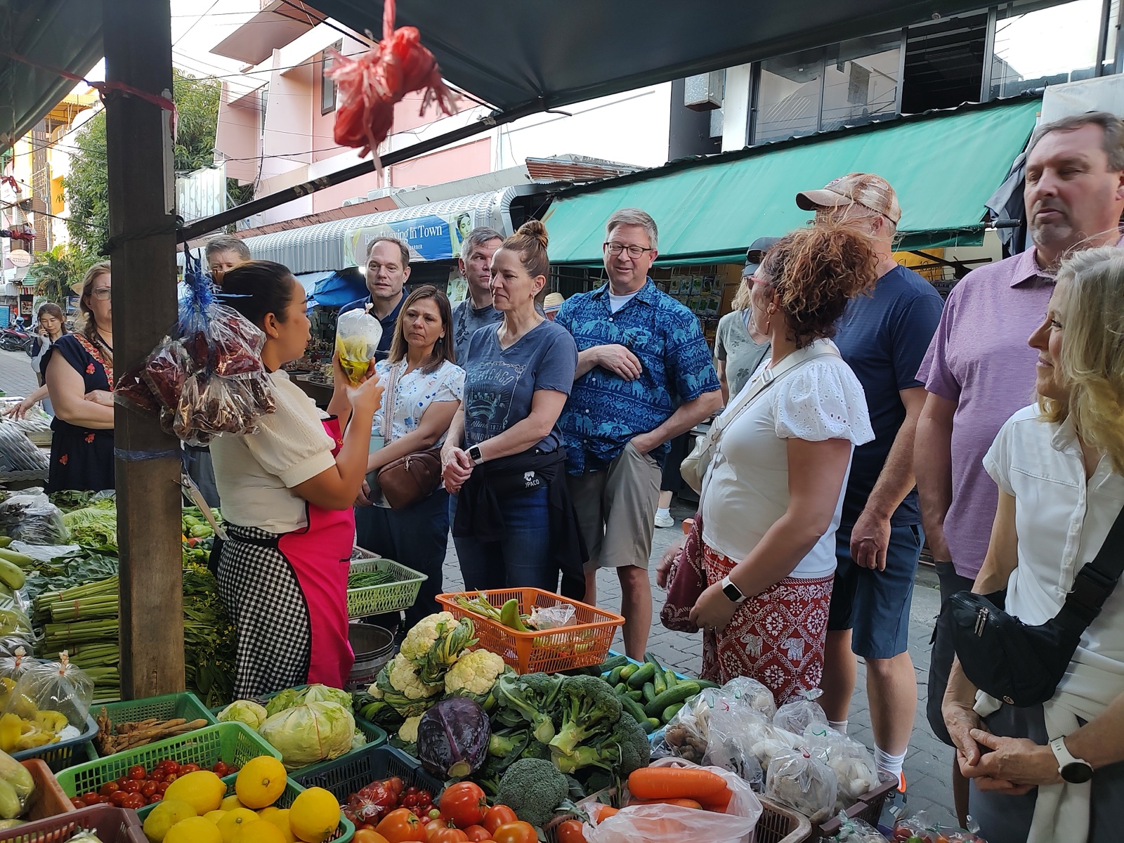 Our main activity that afternoon was a Thai cooking class. It started at the market, where our friendly host showed us a bunch of the ingredients used in Thai cooking.