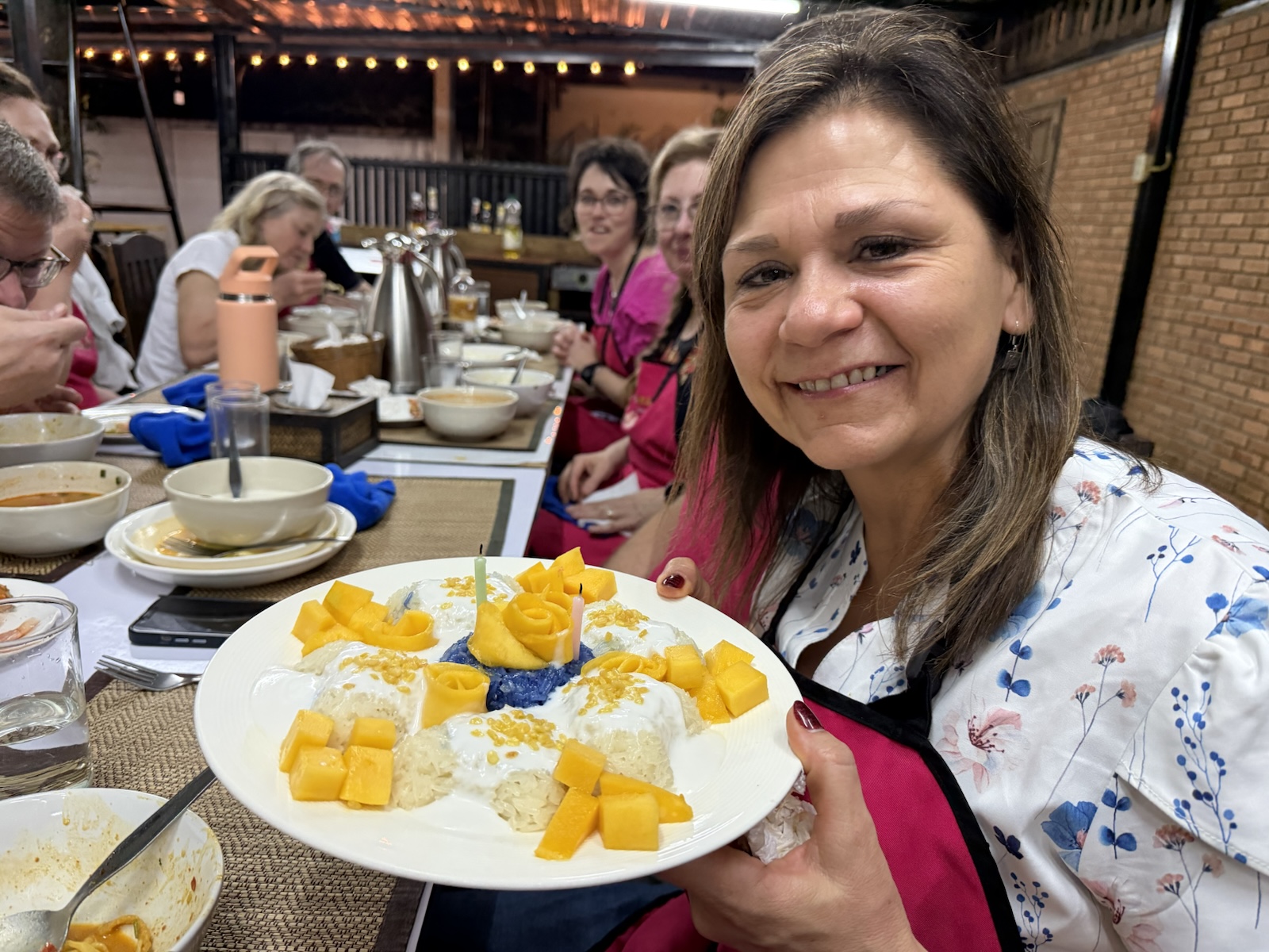 It was Linette's birthday that day, so they brought out some mango sticky rice with candles as a surprise.