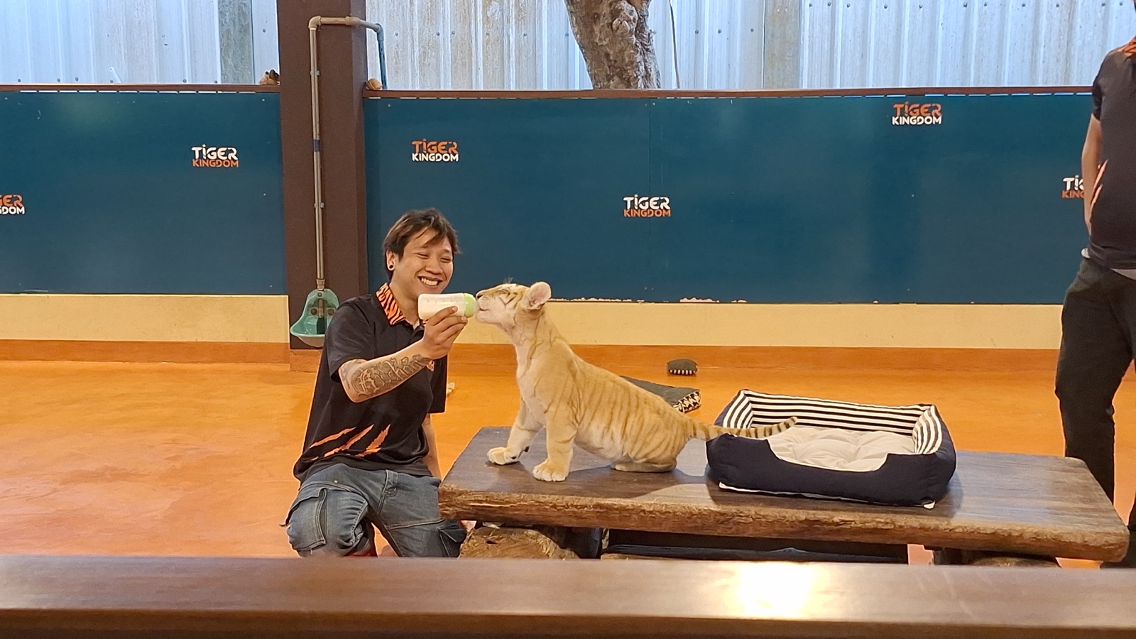 It was really fun to interact with the young tigers. They were a bit playful at first, but fell asleep later.