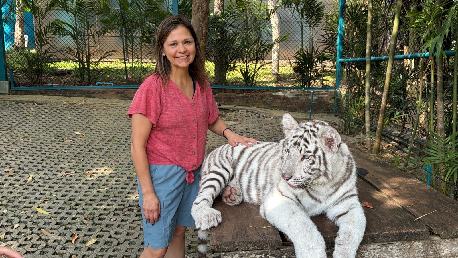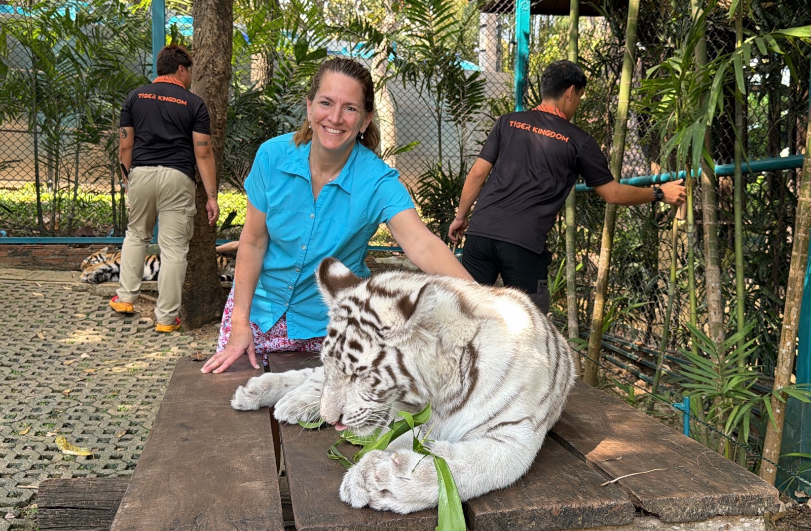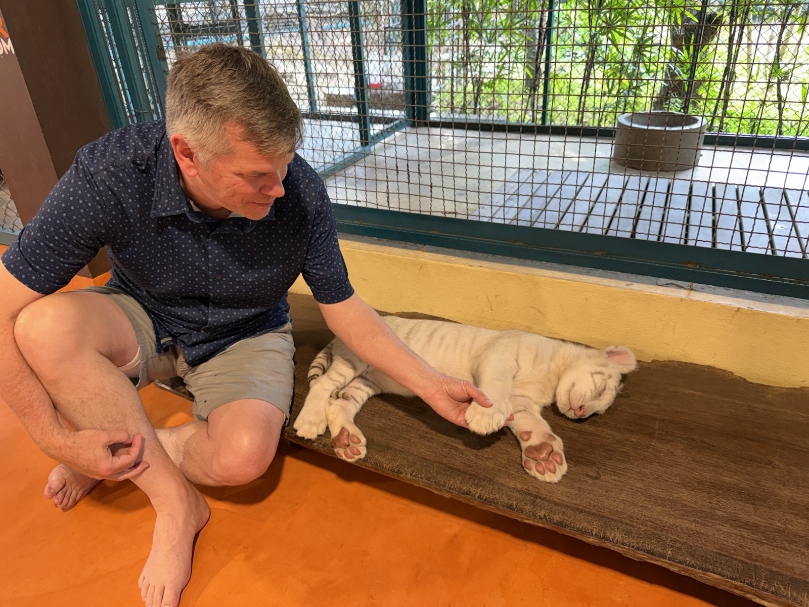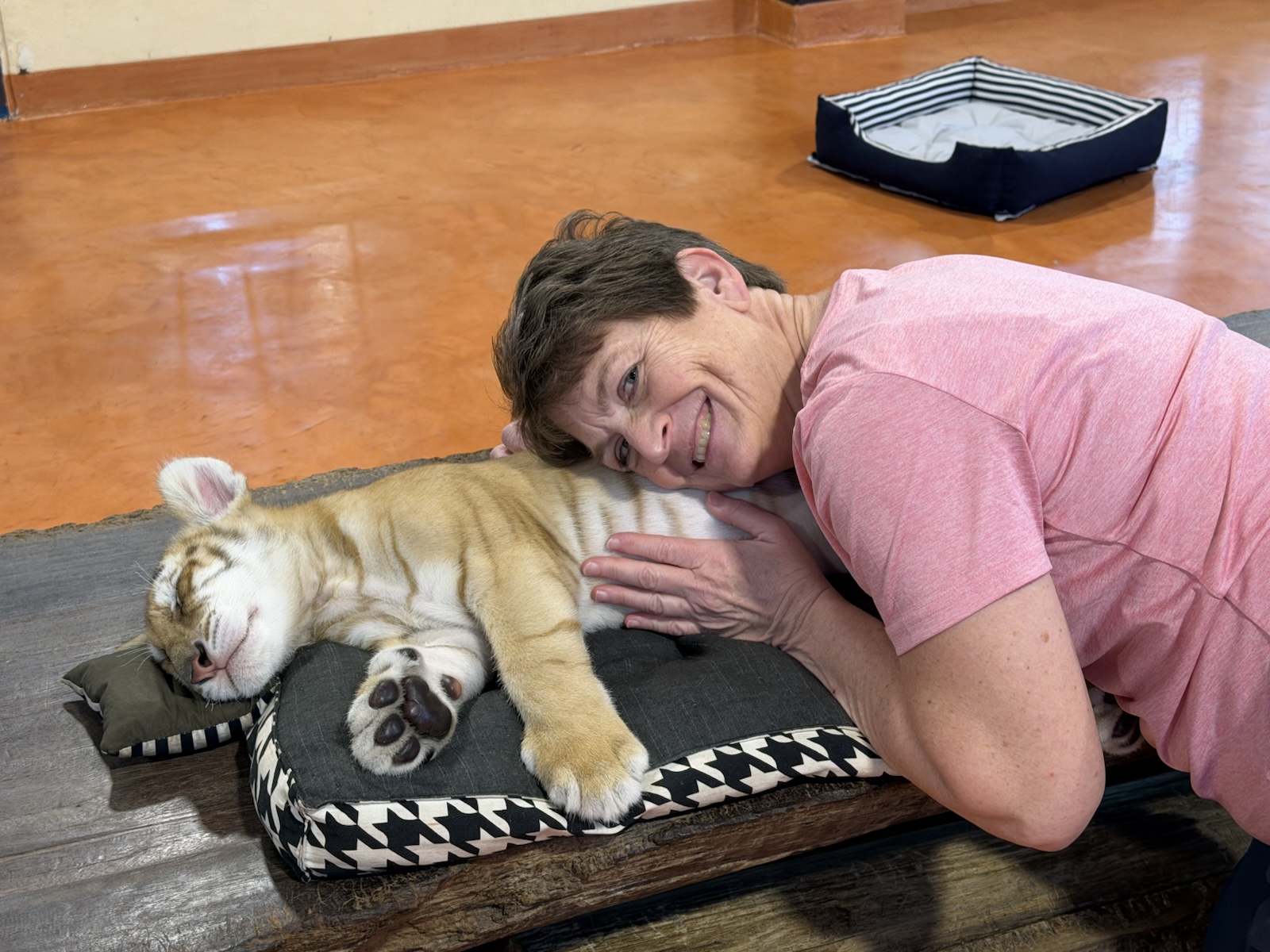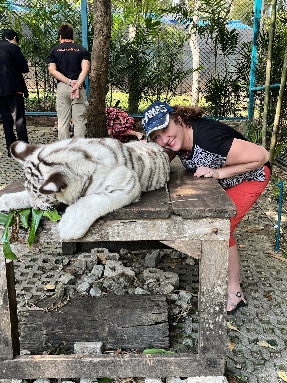 Speaking of white tigers, Linette hung out with this "young" 6-month-old tiger.