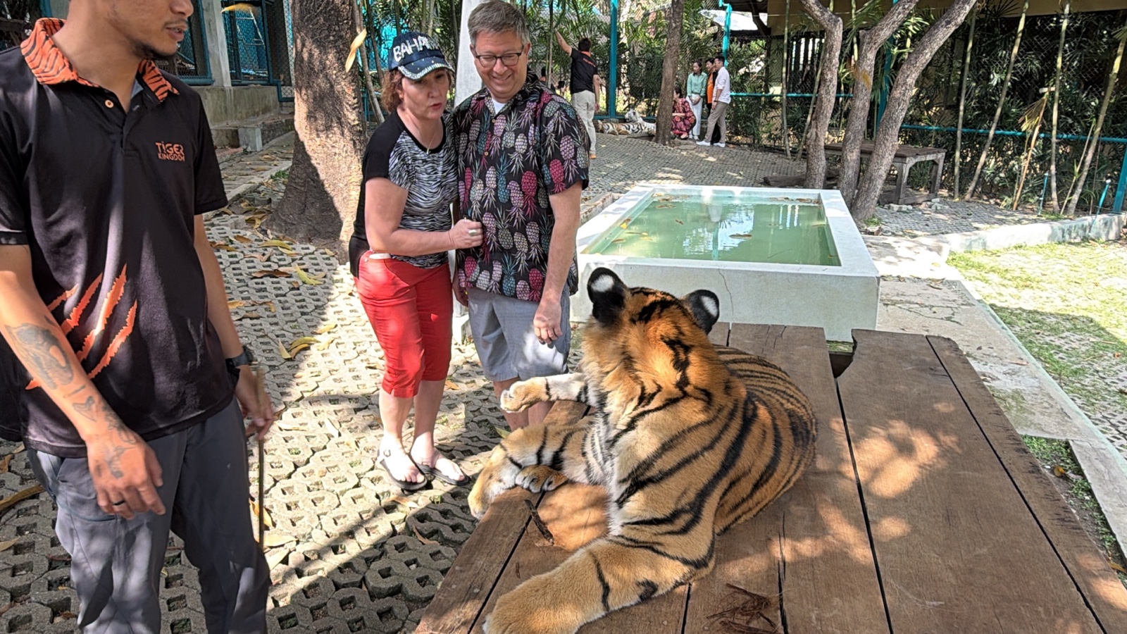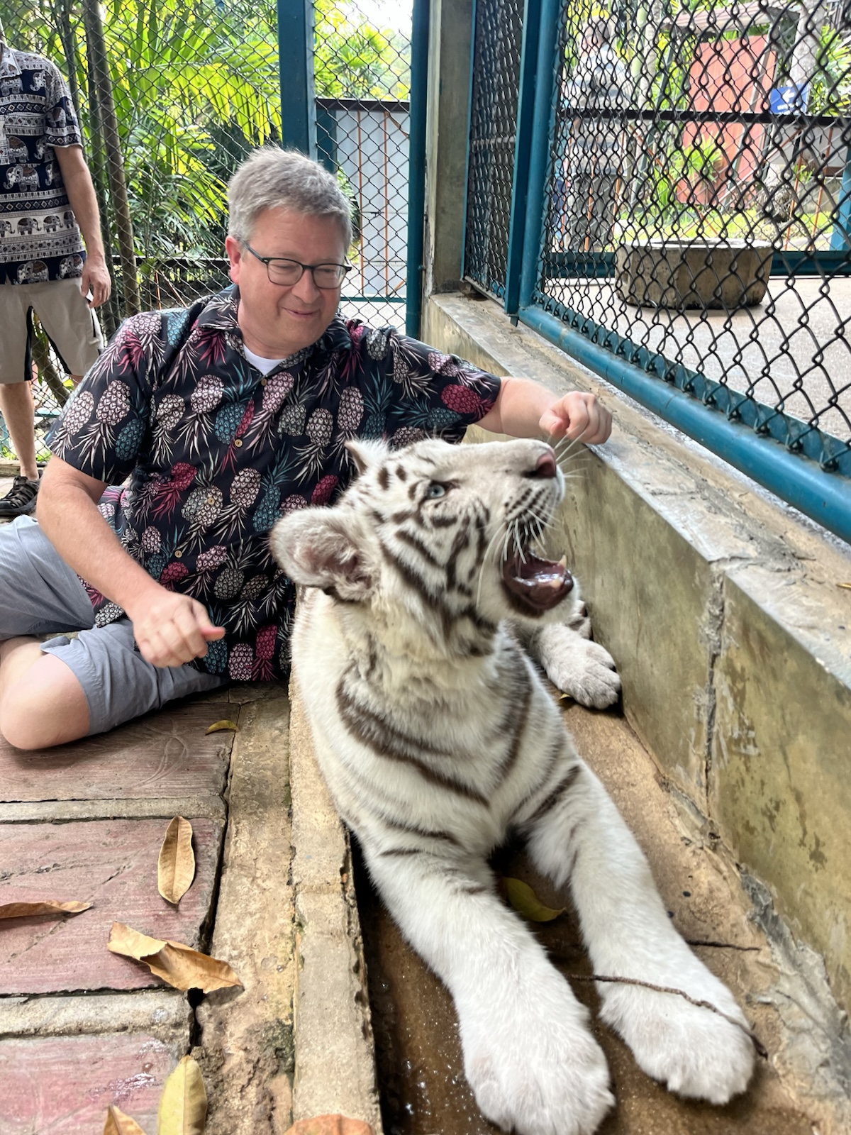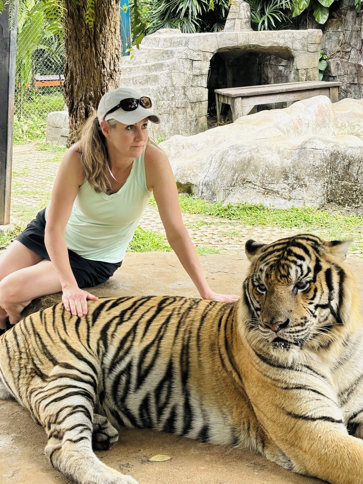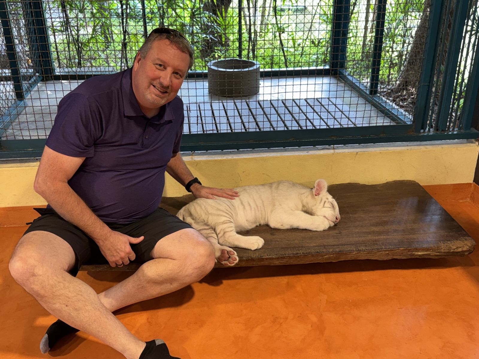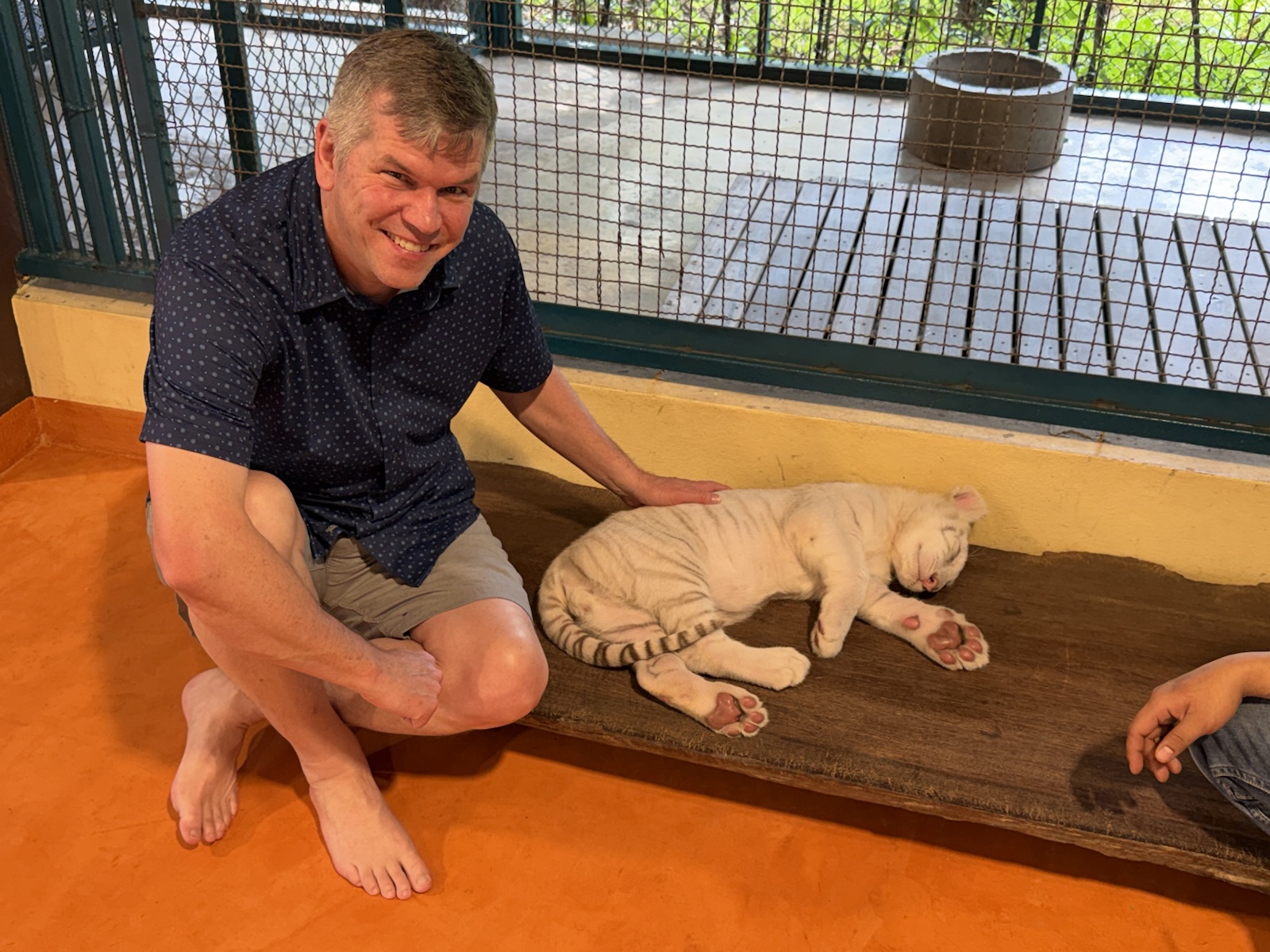 Speaking of white tigers, Linette hung out with this "young" 6-month-old tiger.