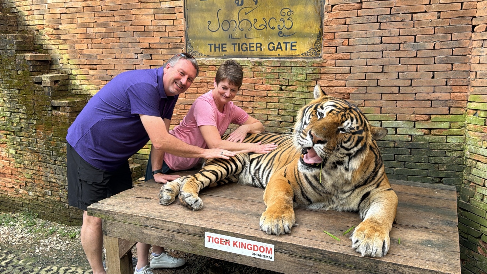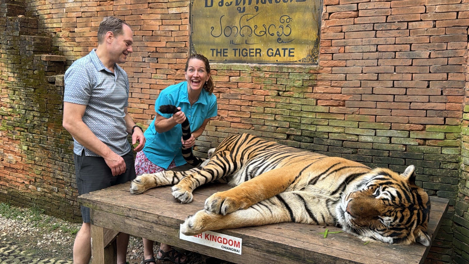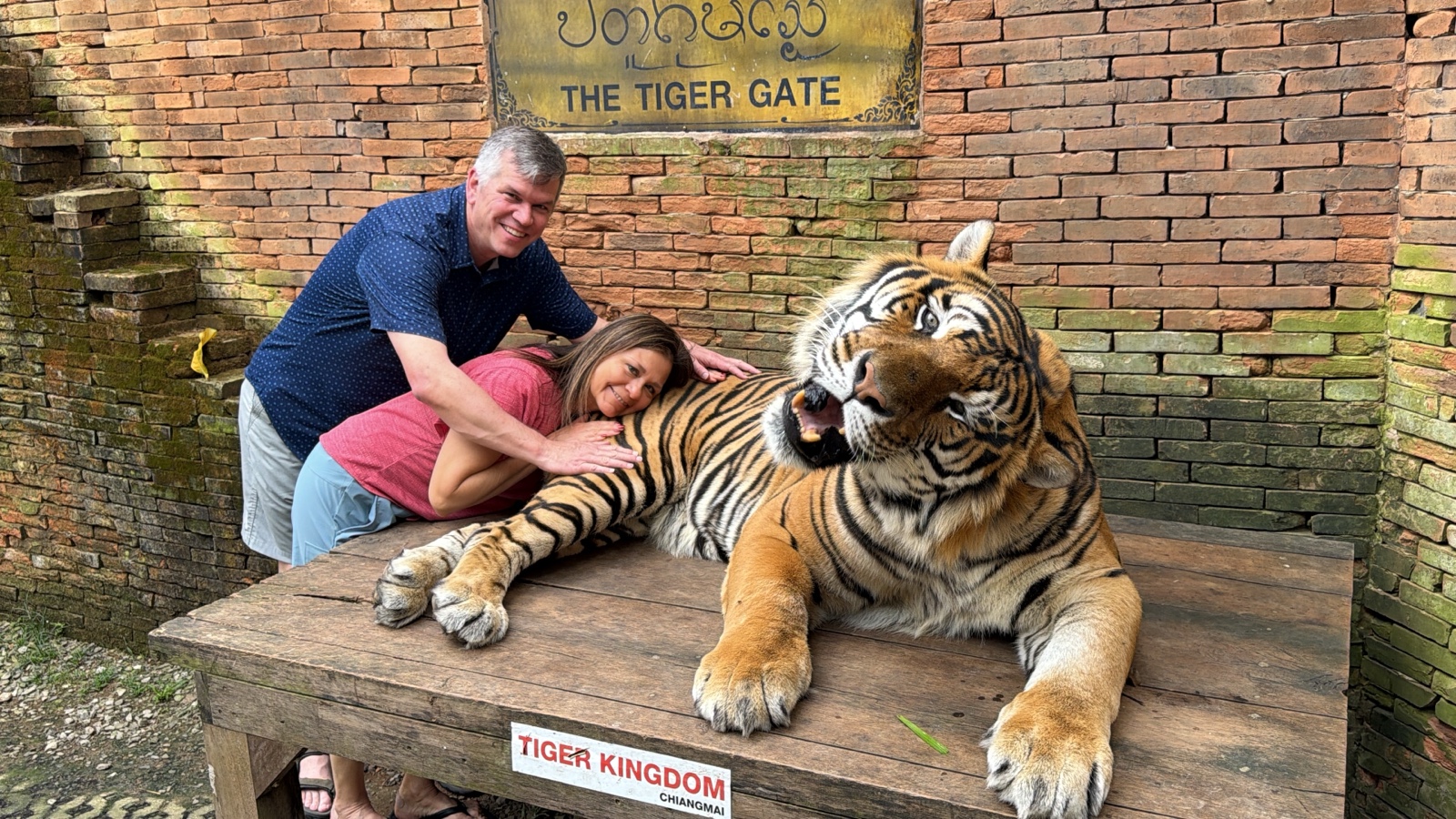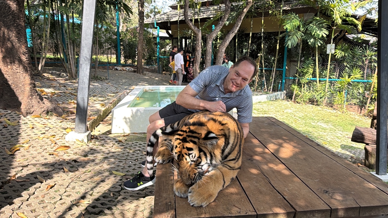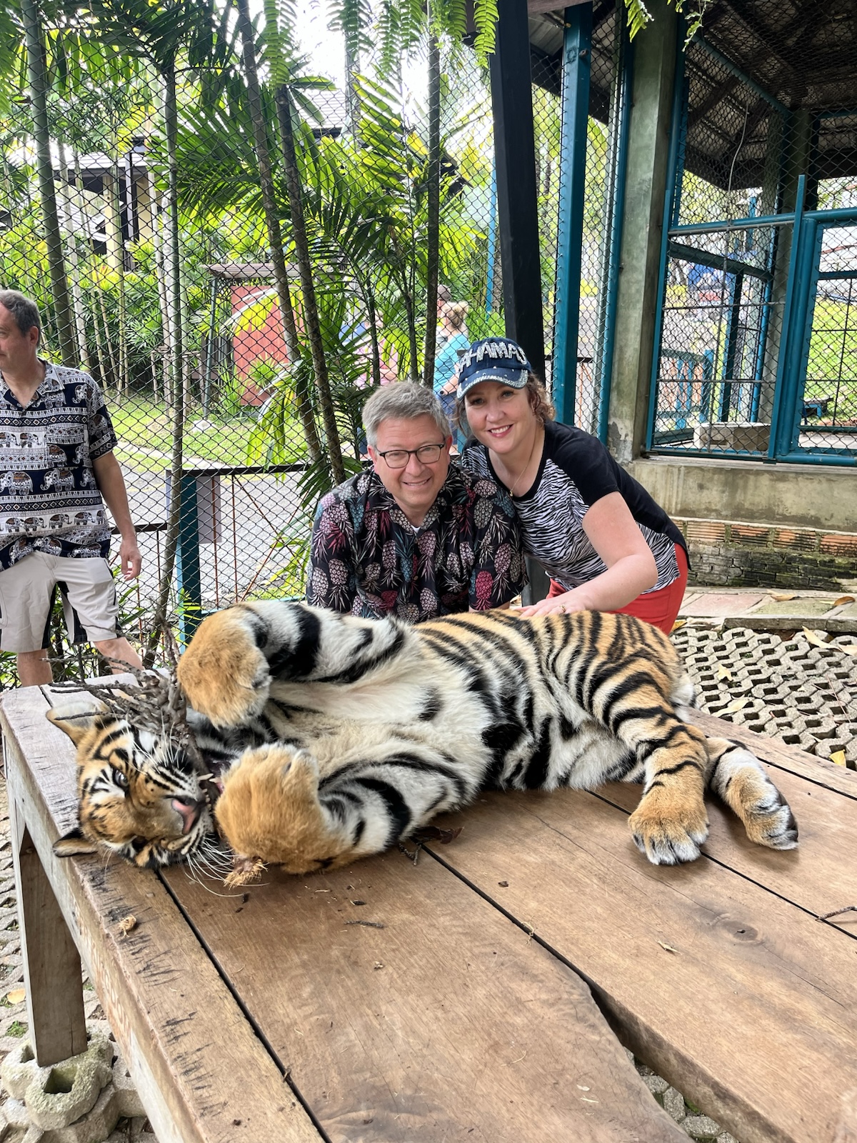 Speaking of white tigers, Linette hung out with this "young" 6-month-old tiger.