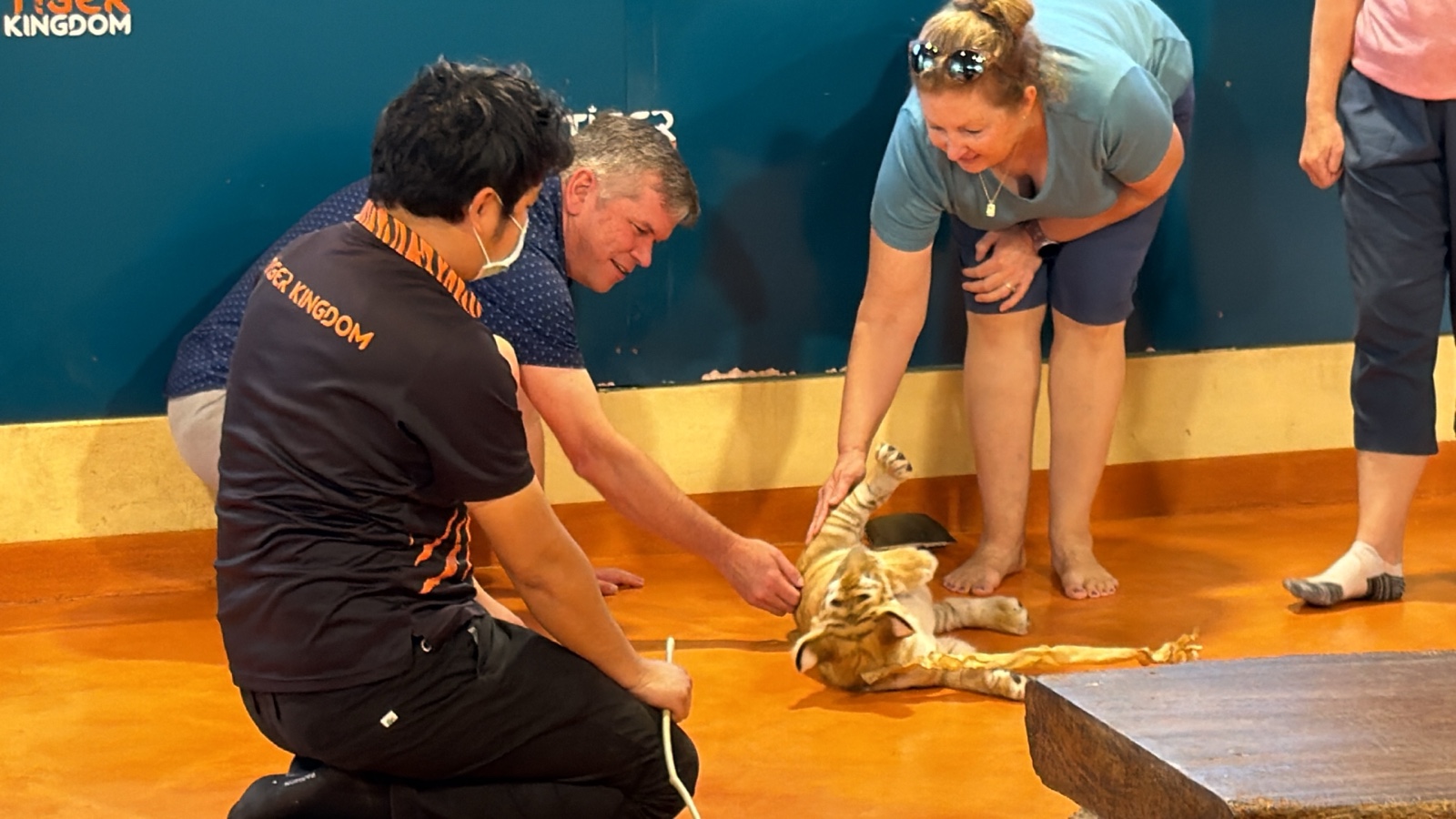 Tiger Kingdom has tigers of various ages that you're able to interact with. Dayna and Kelly got to pet the youngest tigers (6-7 weeks old).