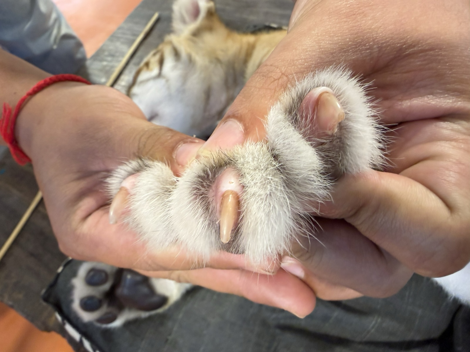 The claws are in there though. The worker squeezed the paw a little to expose them.
