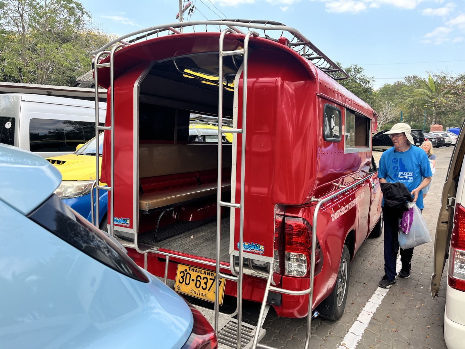 In yet another form of transportation, we rode in this pickup-turned-bus, called a "songthaew" (meaning "two rows".)