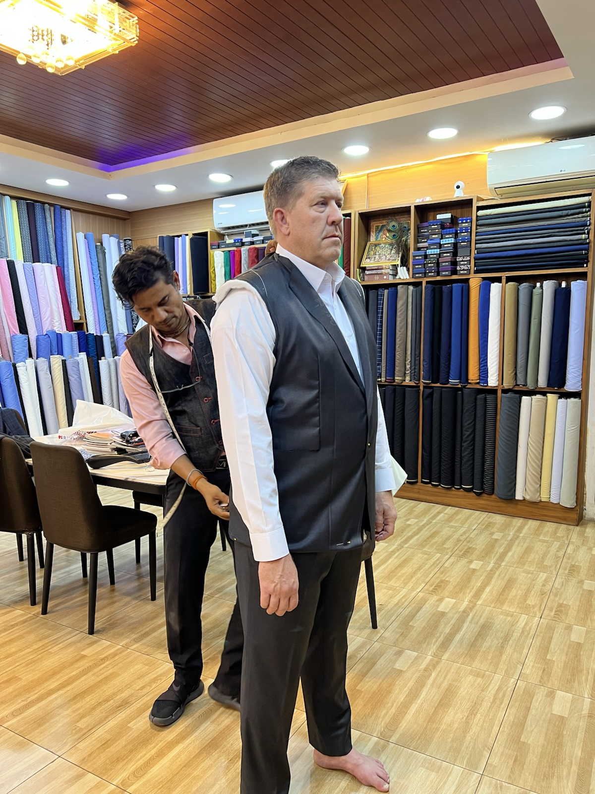 With that, we headed back to the hotel, and then we wandered a couple of blocks over to the market area. Several of the guys had custom suits made, so Roger went in for a fitting.