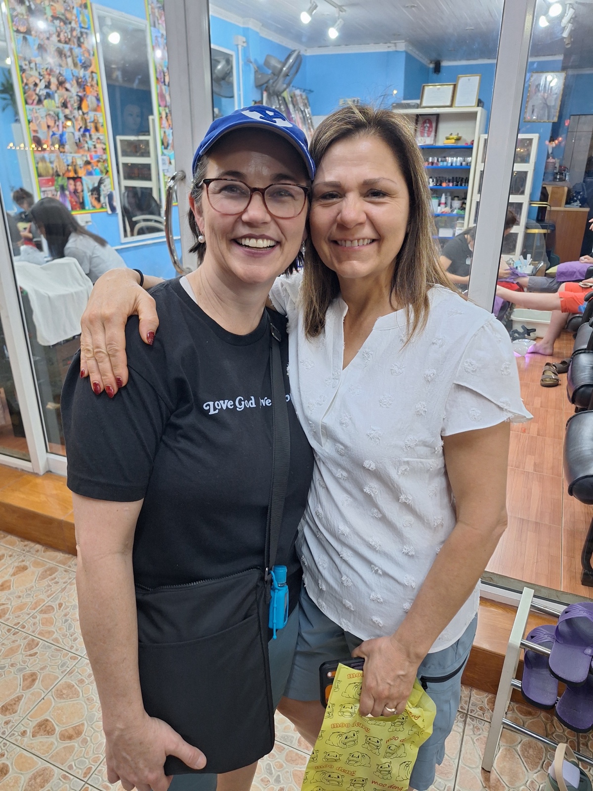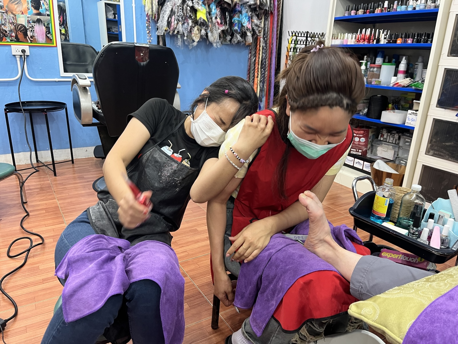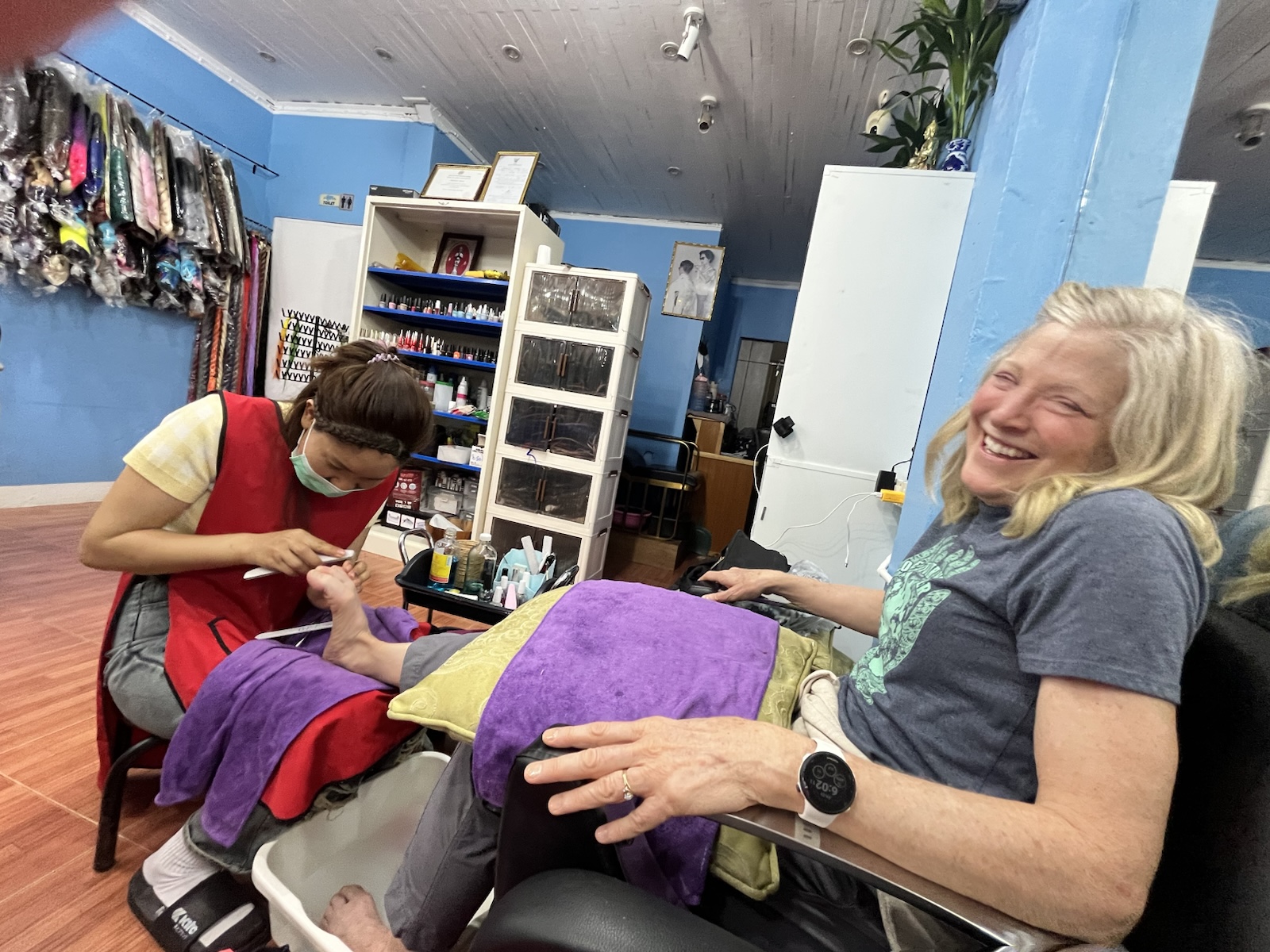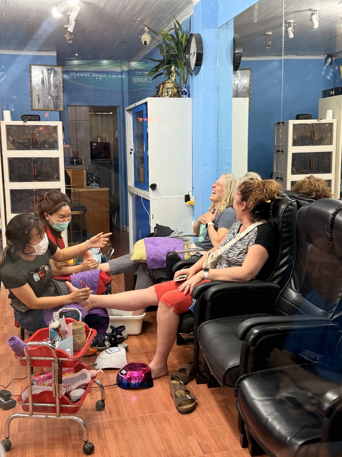 Meanwhile, some of the gals went to get a pedicure. Lesa hadn't gotten one in many years, because the last time, her feet were too ticklish. She thought surely she could handle it now!