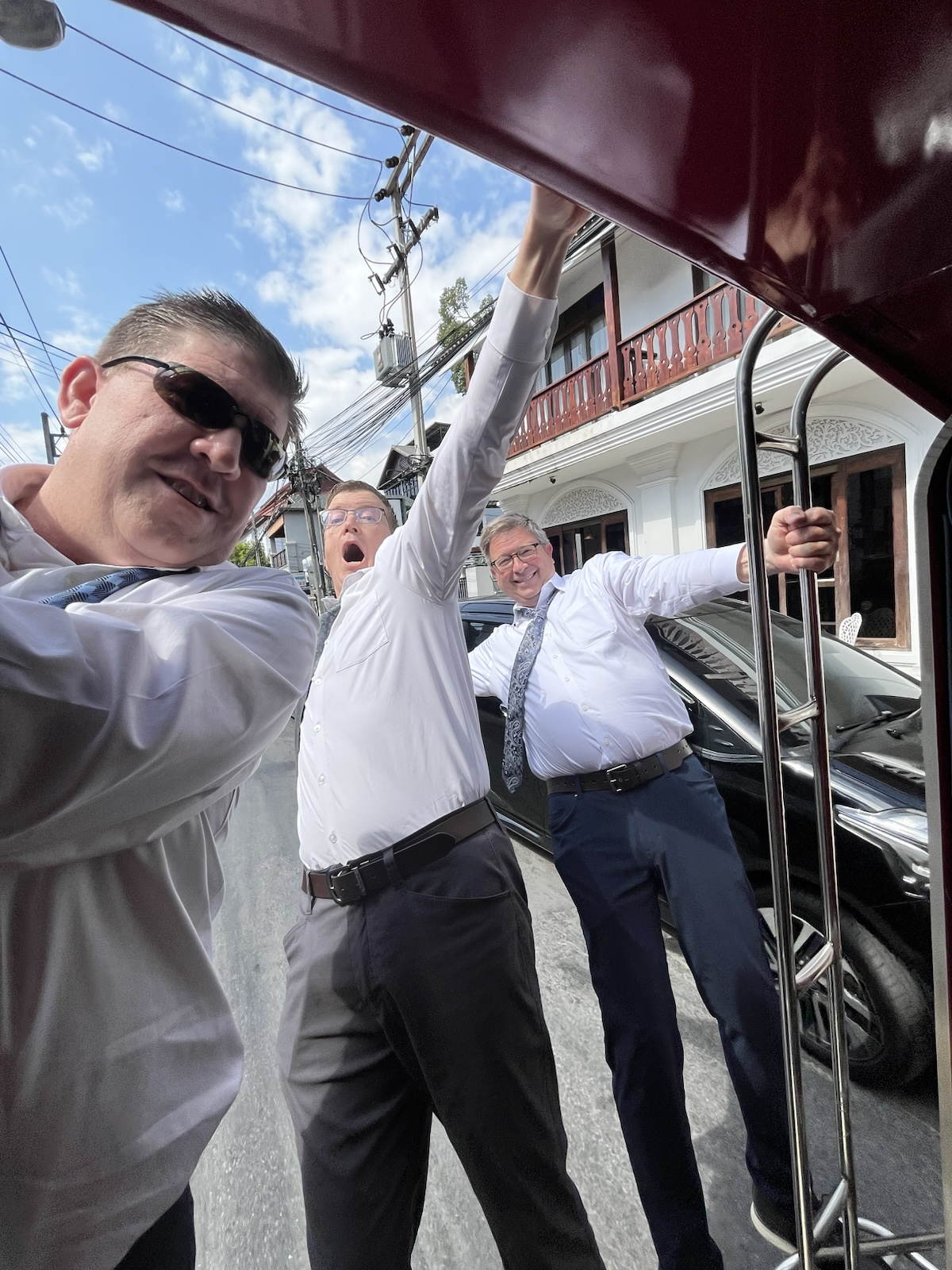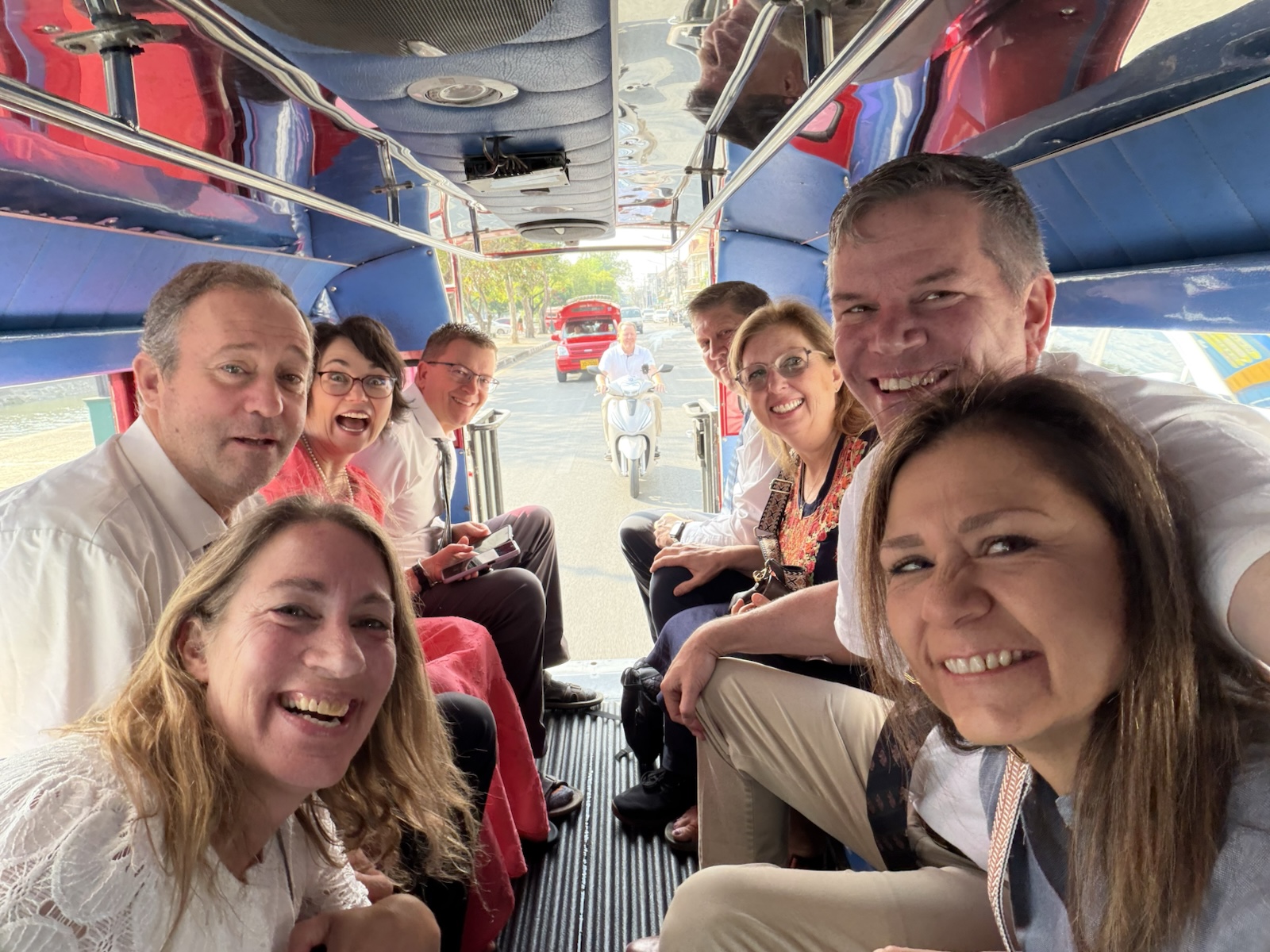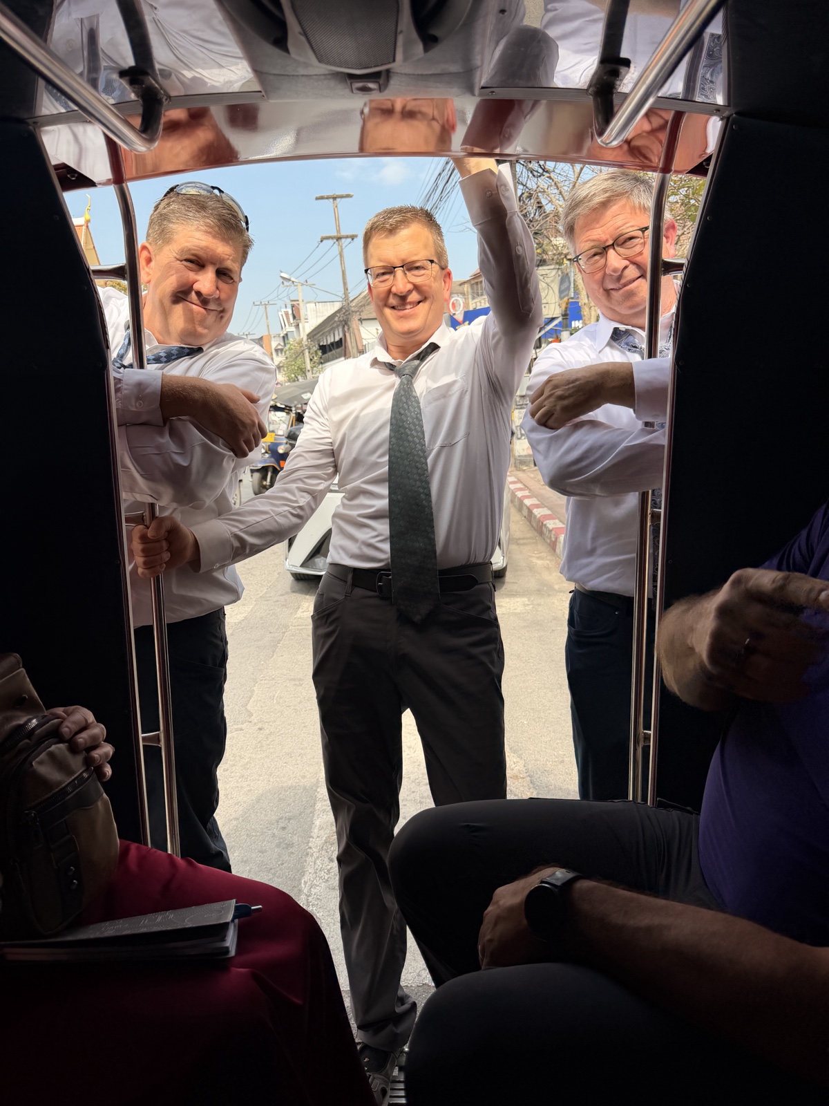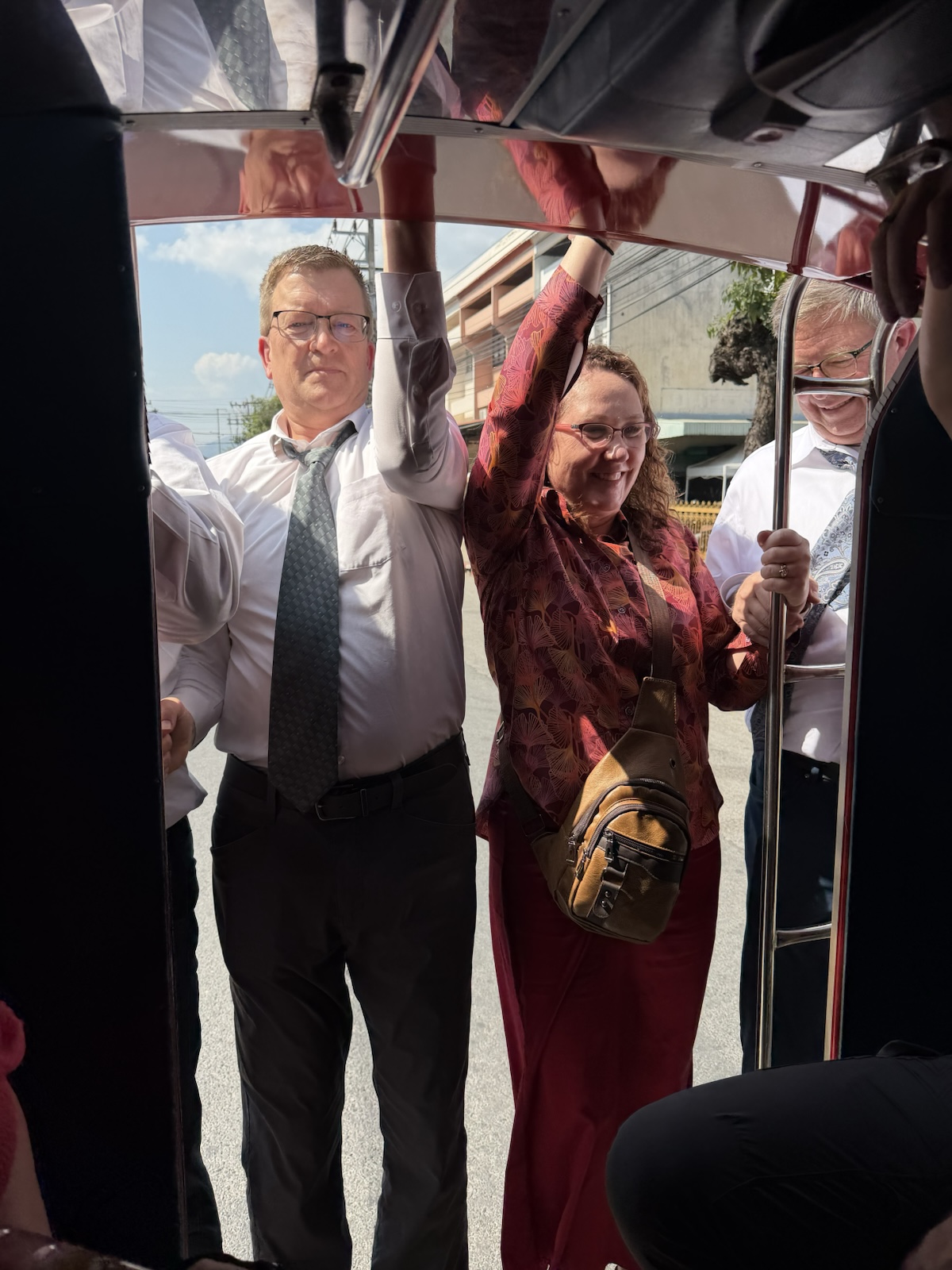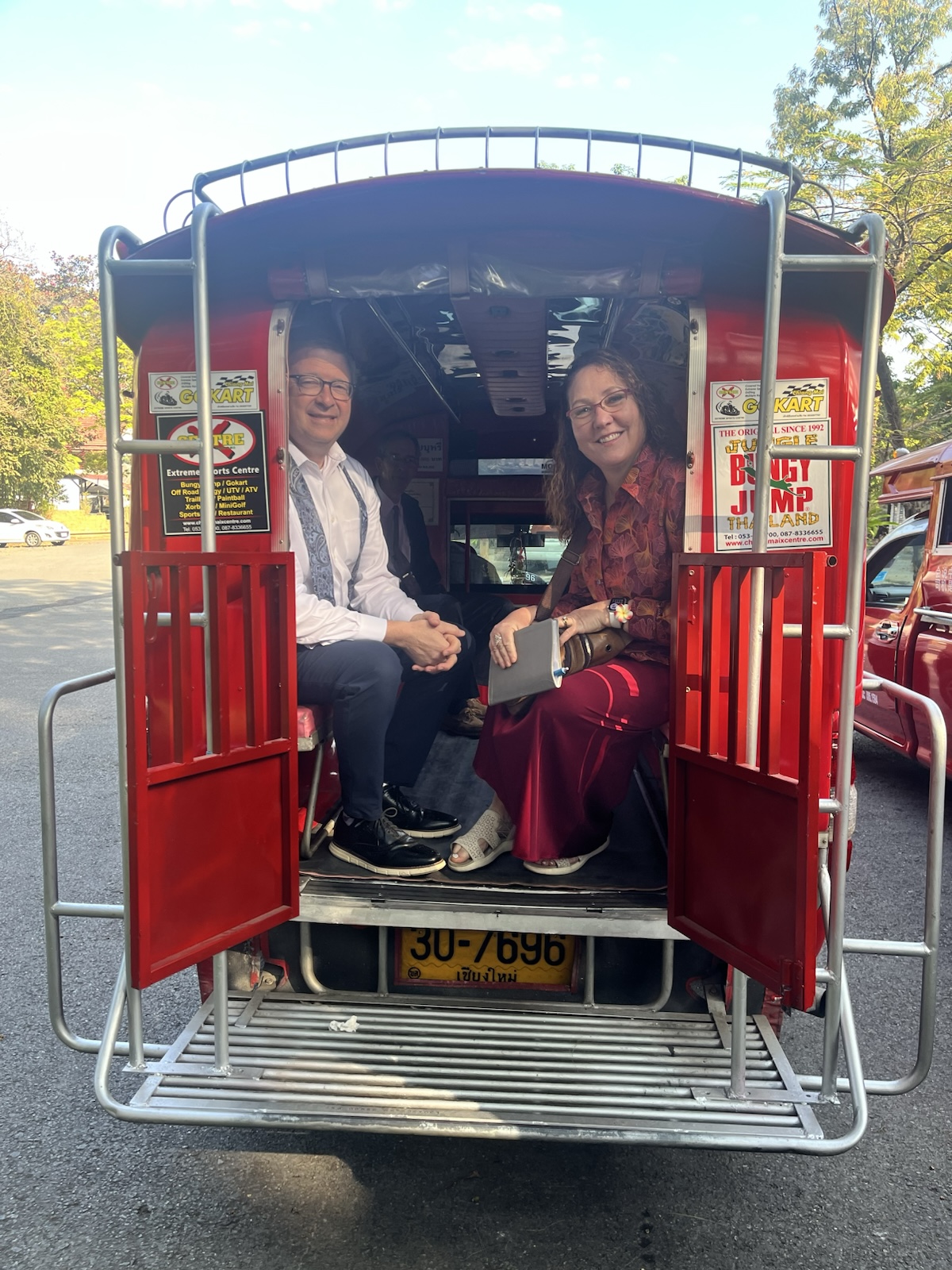 Sunday morning, January 25, 2026, a bunch of us hopped in a couple of vehicles that are called "Songthaews" (Sohng-Taow), meaning "two rows", because there are two benches in them. They are pretty much like a covered pick-up truck.